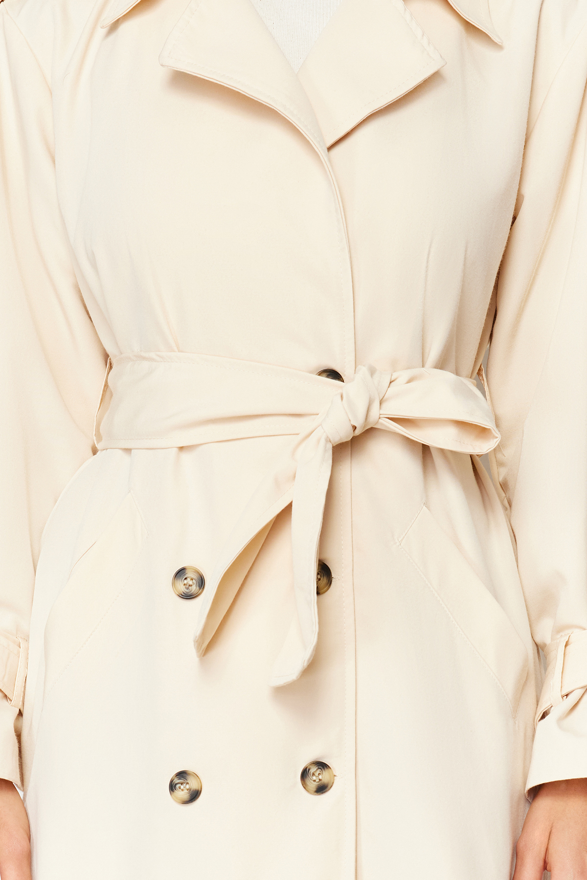 ترنچ کت زنانه اور سایز و کمربنددار بژ trendyolmilla