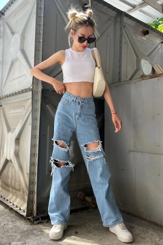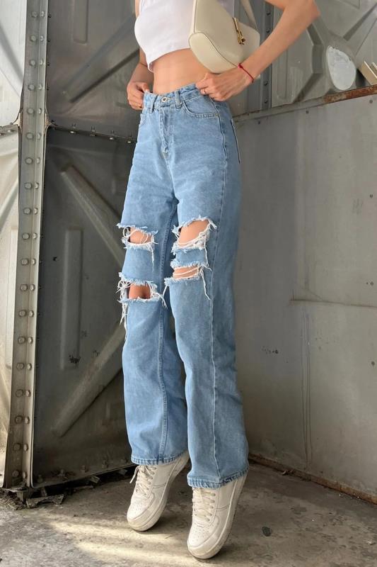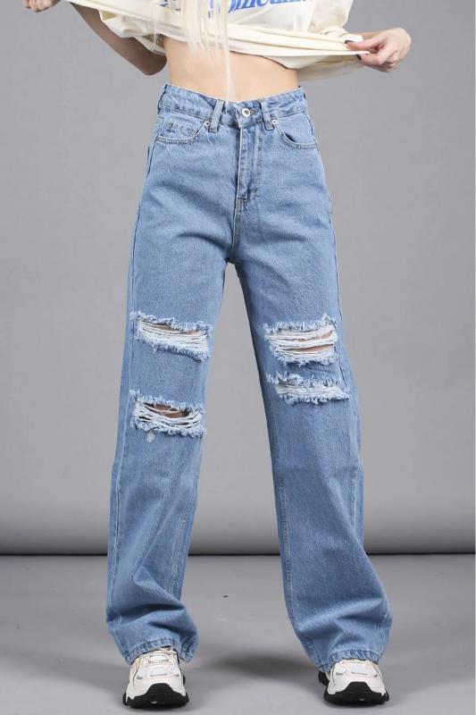 شلوار جین گشاد کمر وسط آبی زنانه Happiness Istanbul