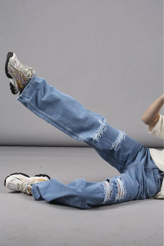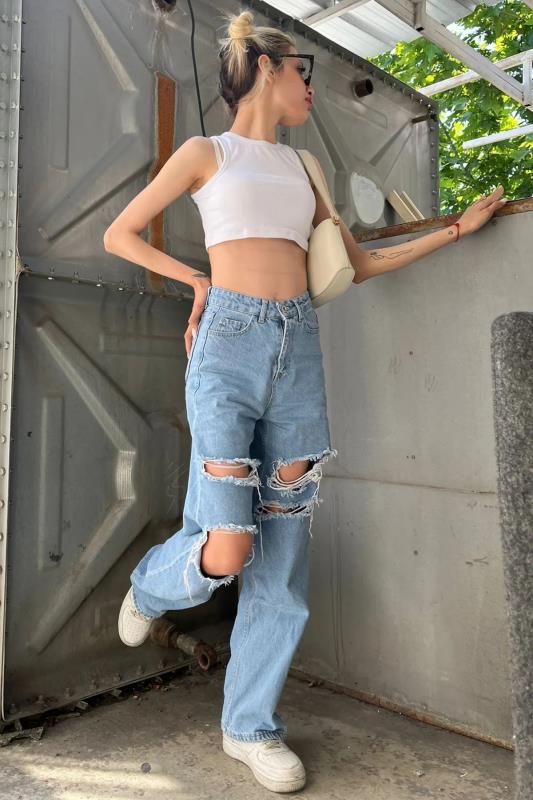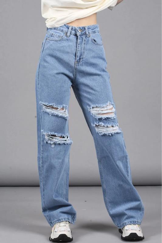 شلوار زنانه جین گشاد بلند آبی روشن TRENDYOLMILLA