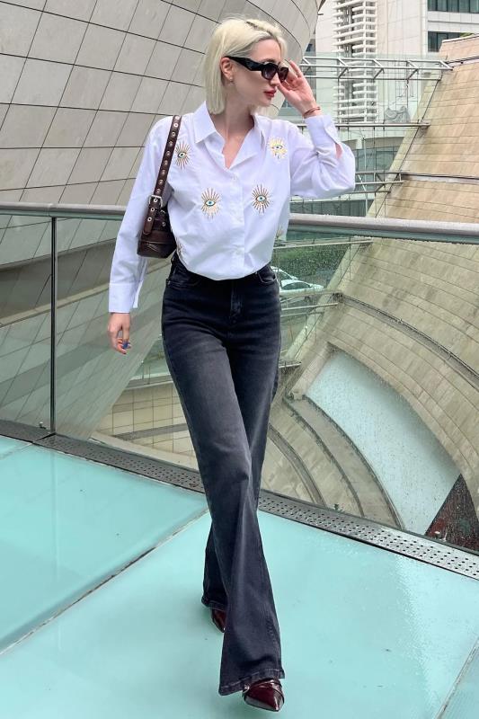 شلوار جین زنانه استرایت فیت طوسی Stradivarius
