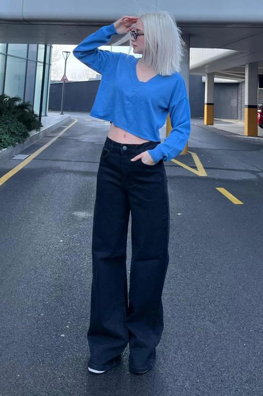 شلوار جین گشاد کمر وسط آبی زنانه Happiness Istanbul