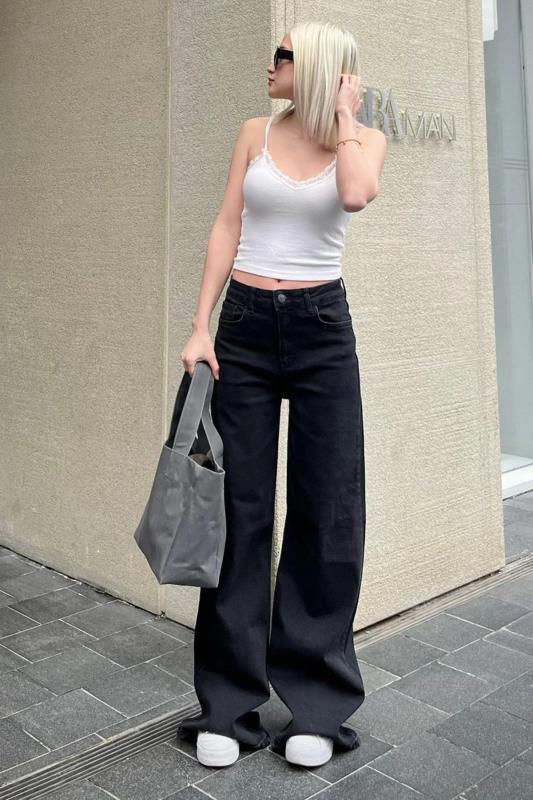 شلوار جین زنانه ساق گشاد مشکی Addax