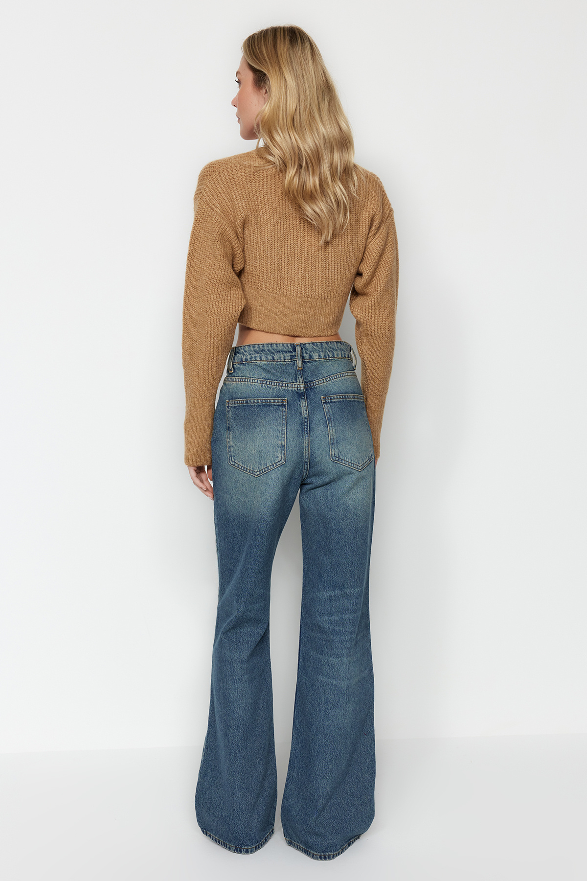 شلوار جین زنانه آبی سنگشور گشاد TRENDYOLMILLA