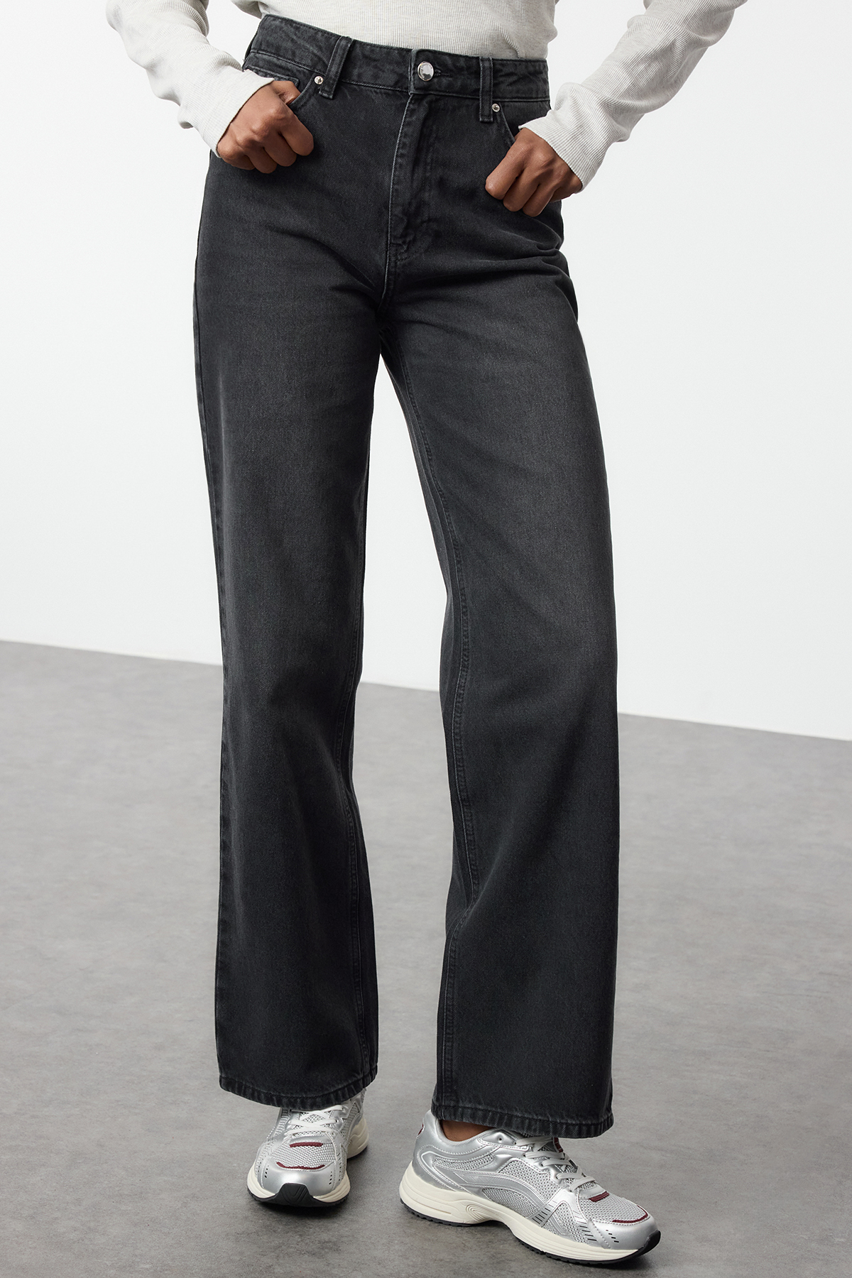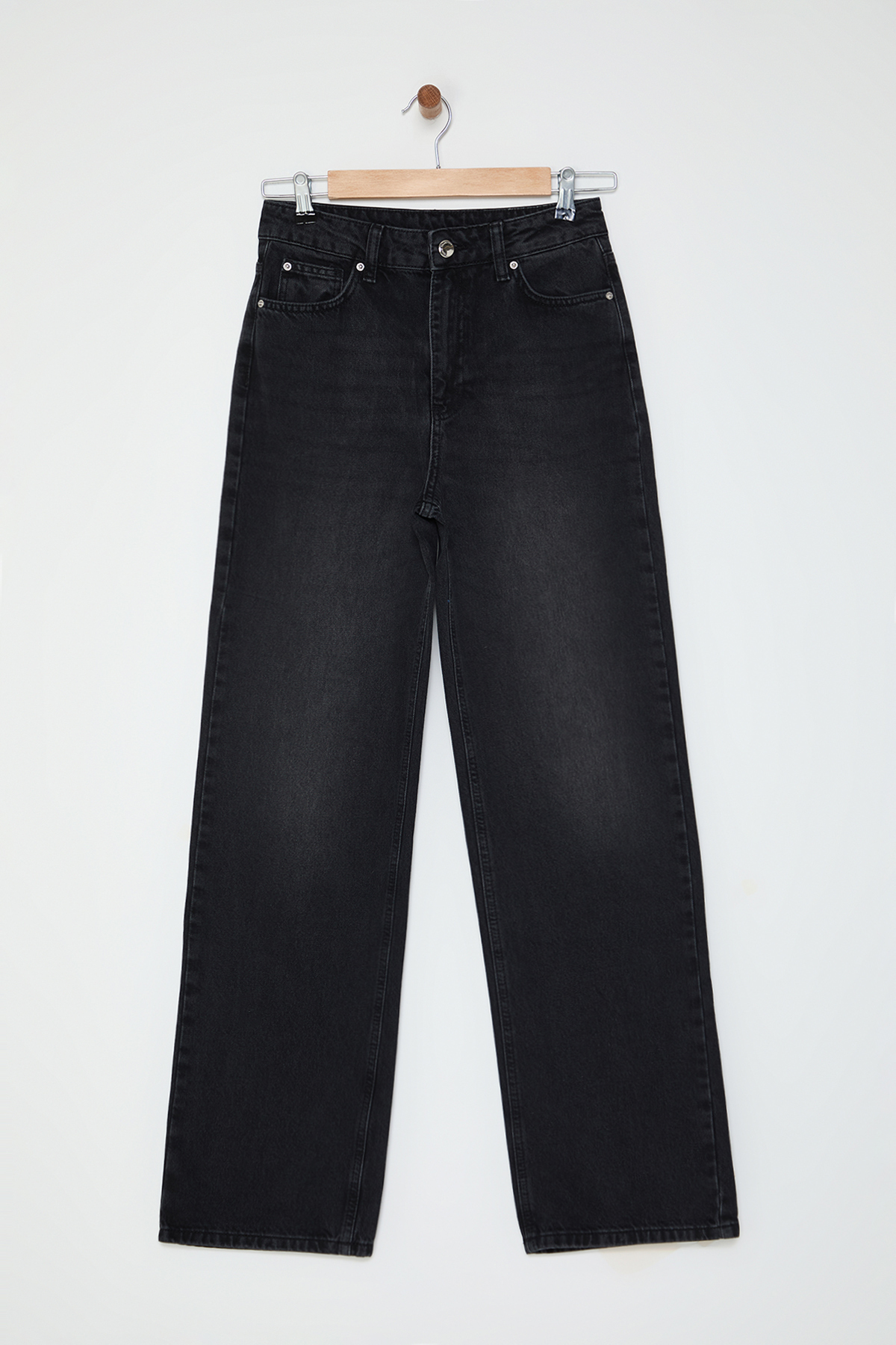شلوار جین زنانه گشاد قد بلند مشکی TRENDYOLMILLA