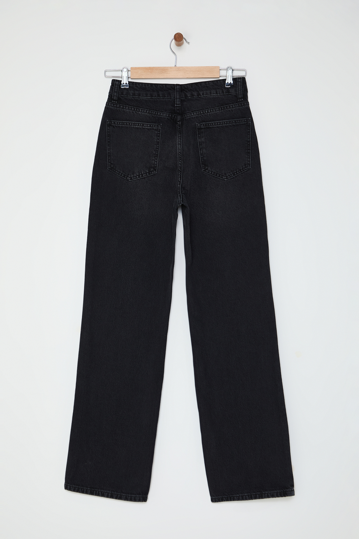 شلوار جین زنانه راسته بسته شدن نامتقارن ذغالی trendyolmilla