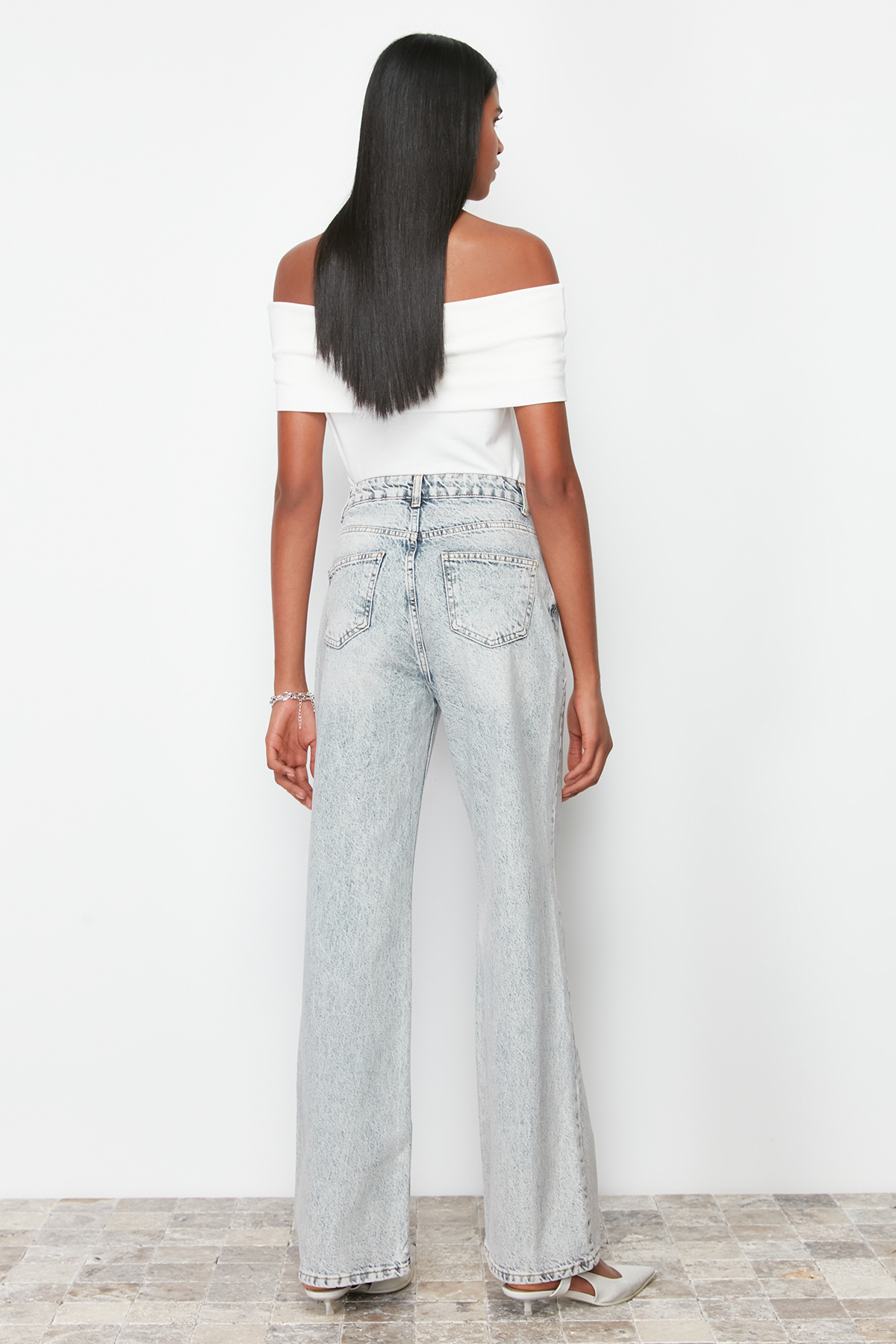 شلوار زنانه جین گشاد بلند آبی روشن TRENDYOLMILLA