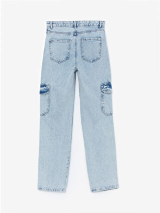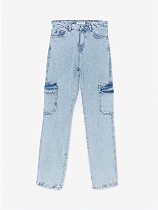 شلوار جین زنانه راسته مدل Cargo آبی یخی LCW
