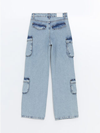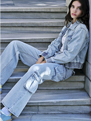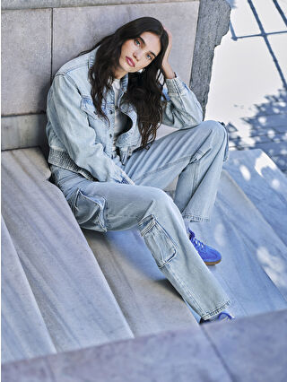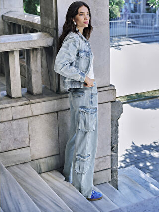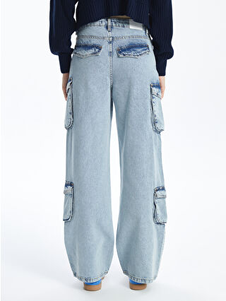 شلوار جین زنانه گشاد مدل Cargo آبی یخی XSIDE