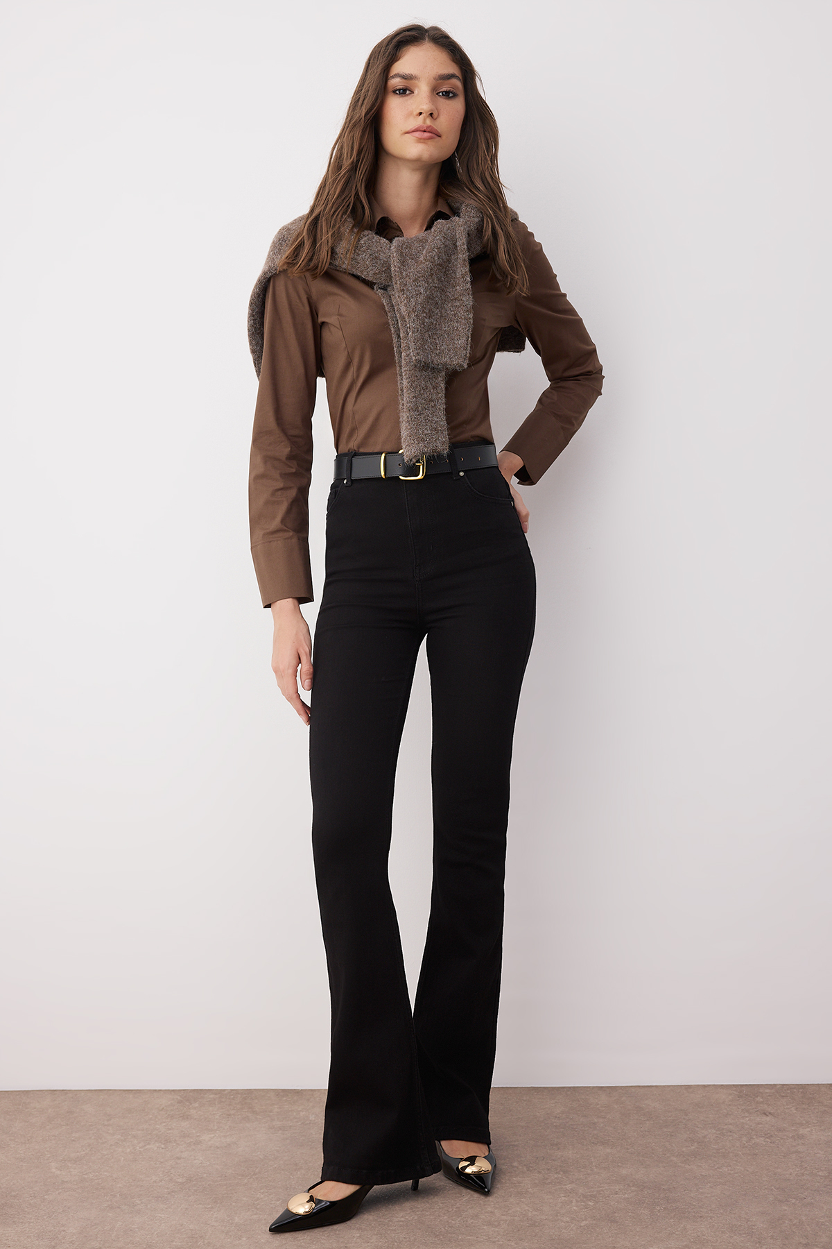 شلوار جین زنانه پای راست و پهن قهوه ای Stradivarius