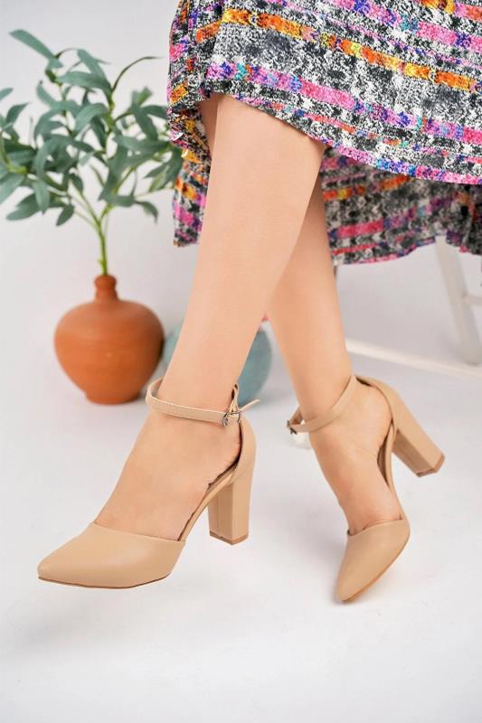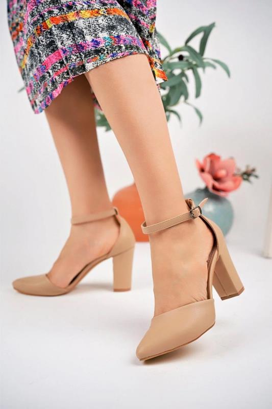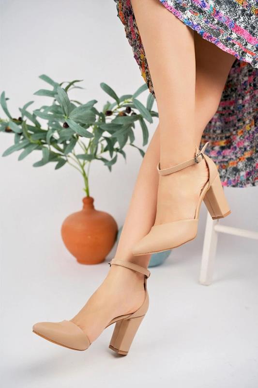 کفشهای پاشنه بلند زنانه مدل مربع بنددار مری جین بژ Trendyolmilla Shoes