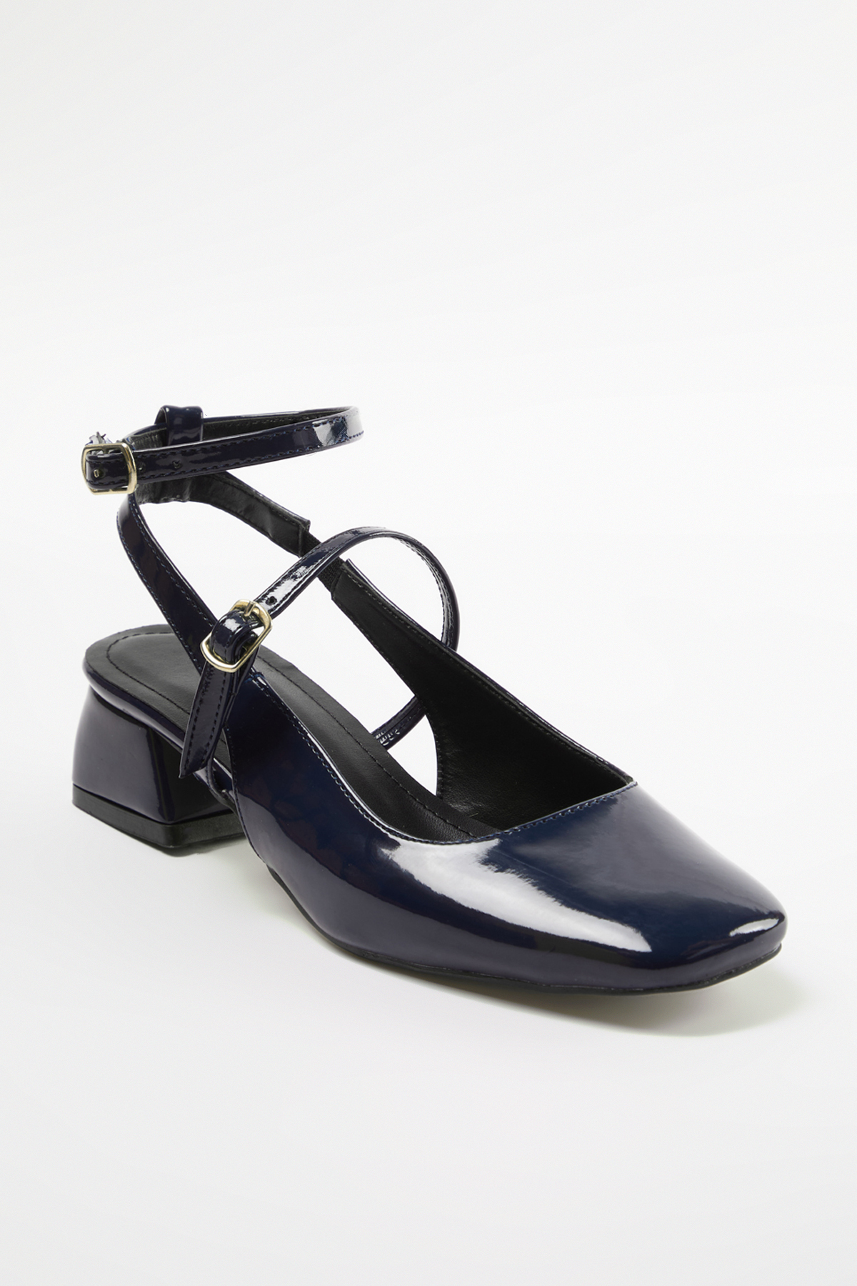 کفش زنانه بند دار پاشنه متوسط پنجه گرد چرم اصل POST(R) سورمه ای