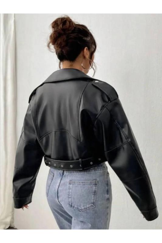 صفحه اصلی\همه کاپشن ها\کت چرم دوچرخه سواری مشکی زنانه اورسایز فصل جدید NET OF NOT مشکی