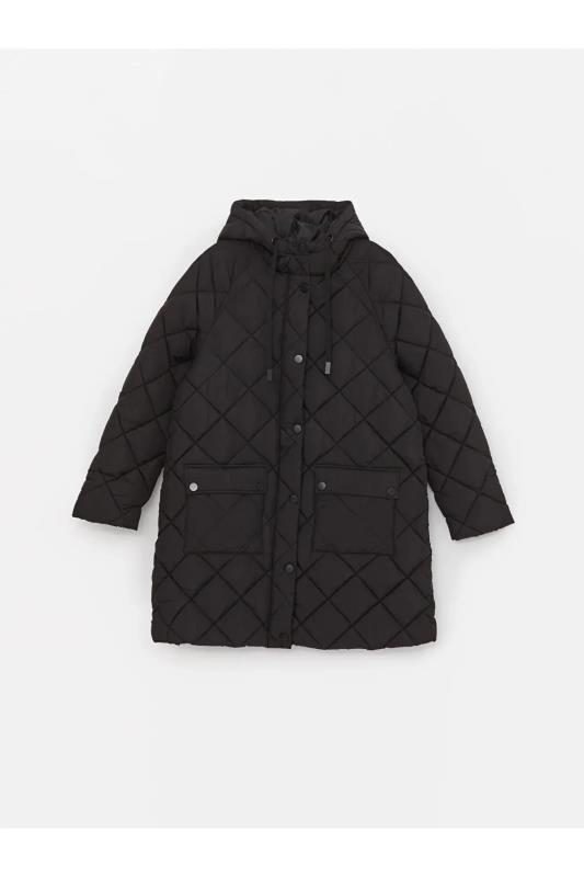 کاپشن پف دار زنانه کلاه دار LC Waikiki مشکی