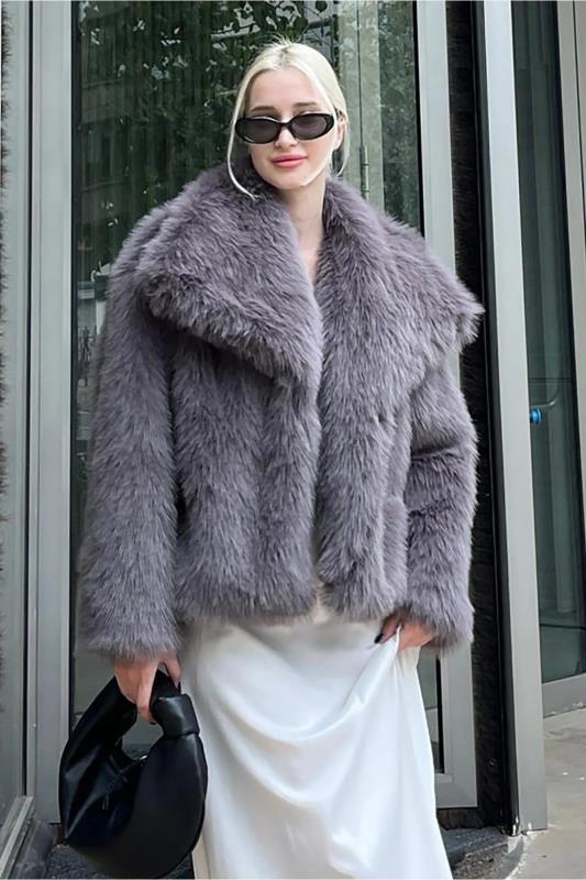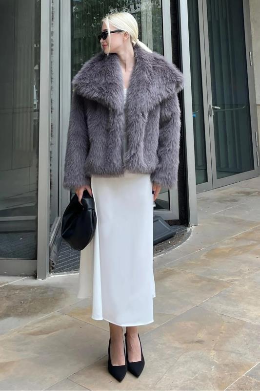 کت خزدار بافت نرم زنانه MG2204 Madmext ذغالی