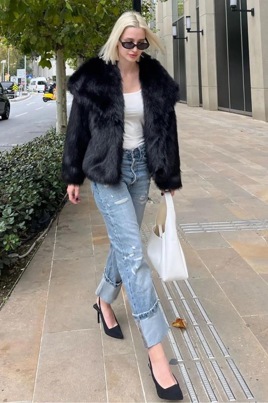 کت خزدار بافت نرم زنانه MG2204 Madmext مشکی