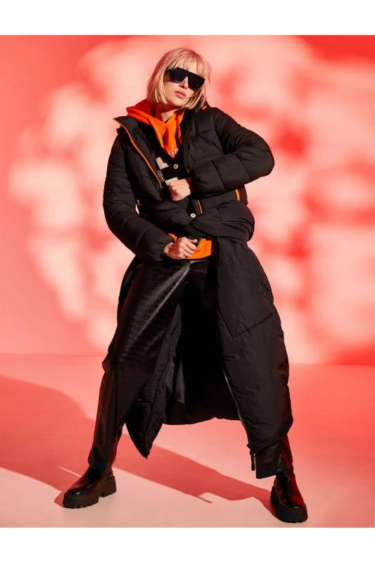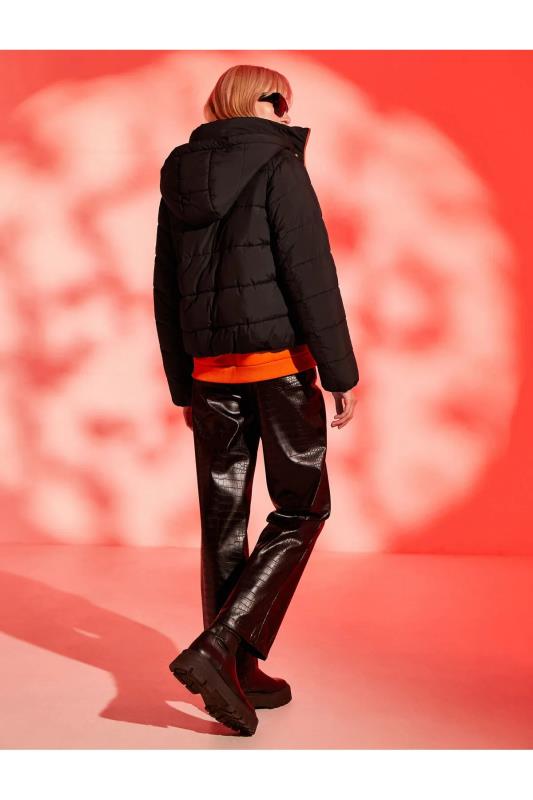کاپشن زنانه پف دار یقه ای ضد آب Relax Fit Stand مشکی Defacto