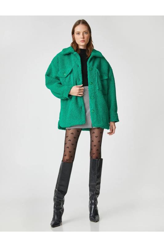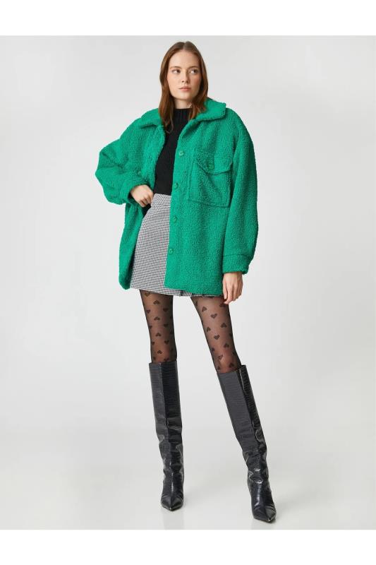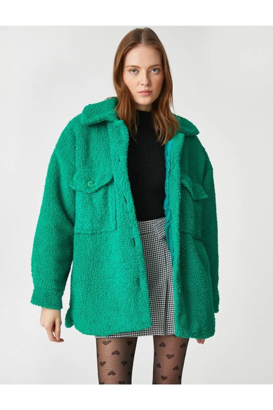 صفحه اصلی\همه کاپشن ها\ژاکت مخملی بزرگ با جیب Koton زمردی