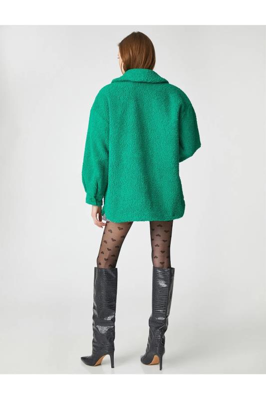 ژاکت مخملی بزرگ با جیب Koton زمردی