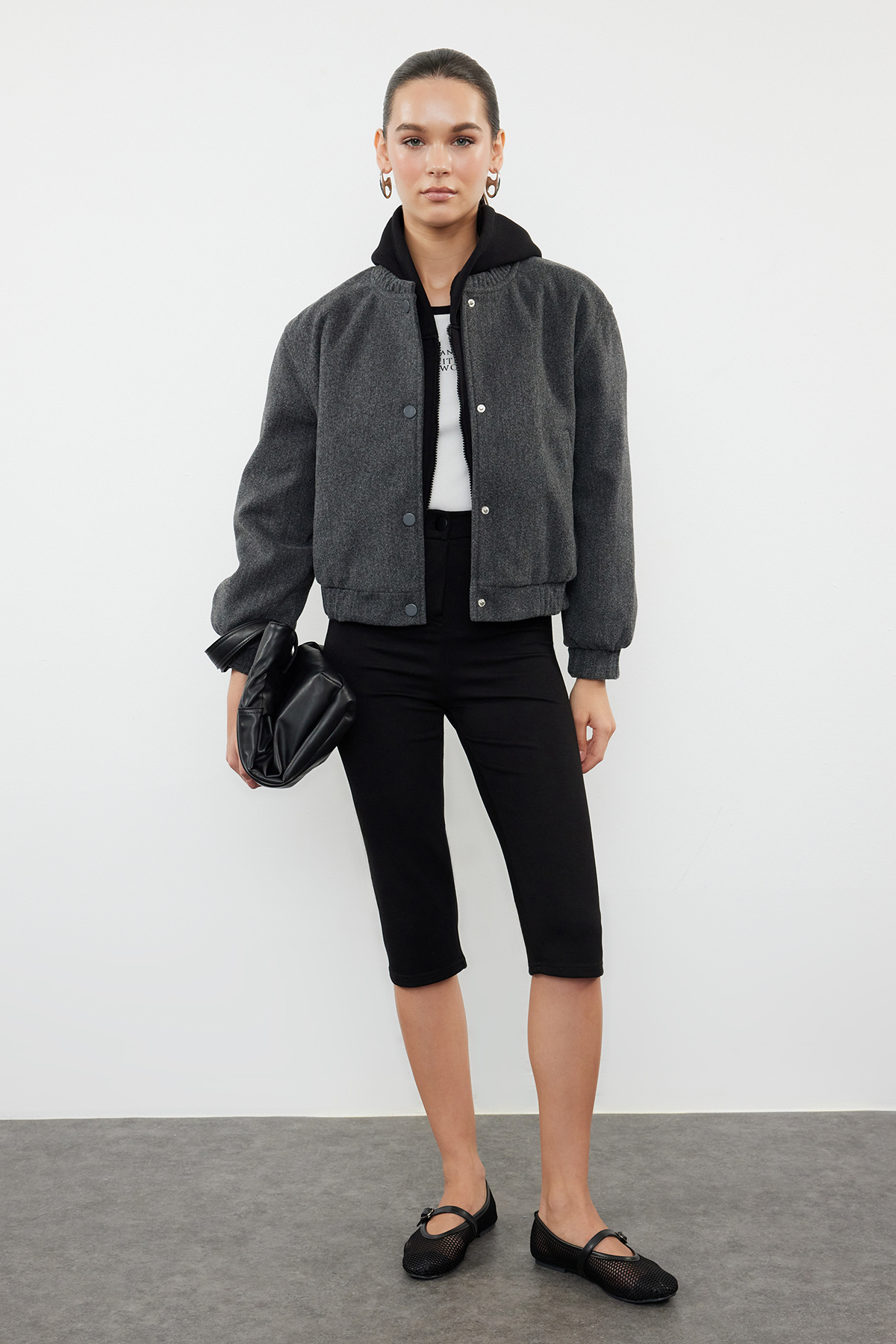 کاپشن زنانه طرح بمب افکن ذغالی TRENDYOLMILLA