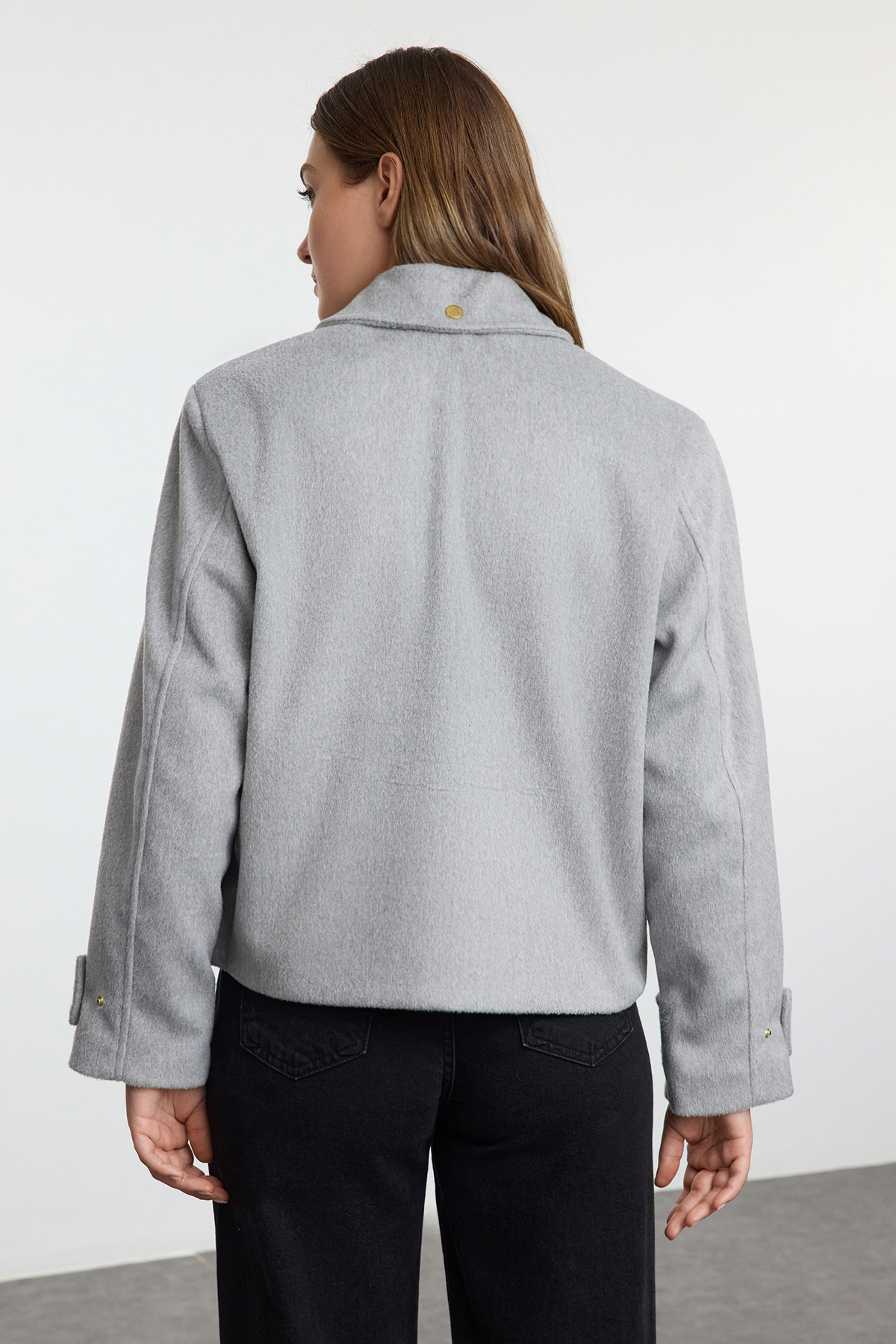 کاپشن زنانه نازک اورسایز خاکستری TRENDYOLMILLA