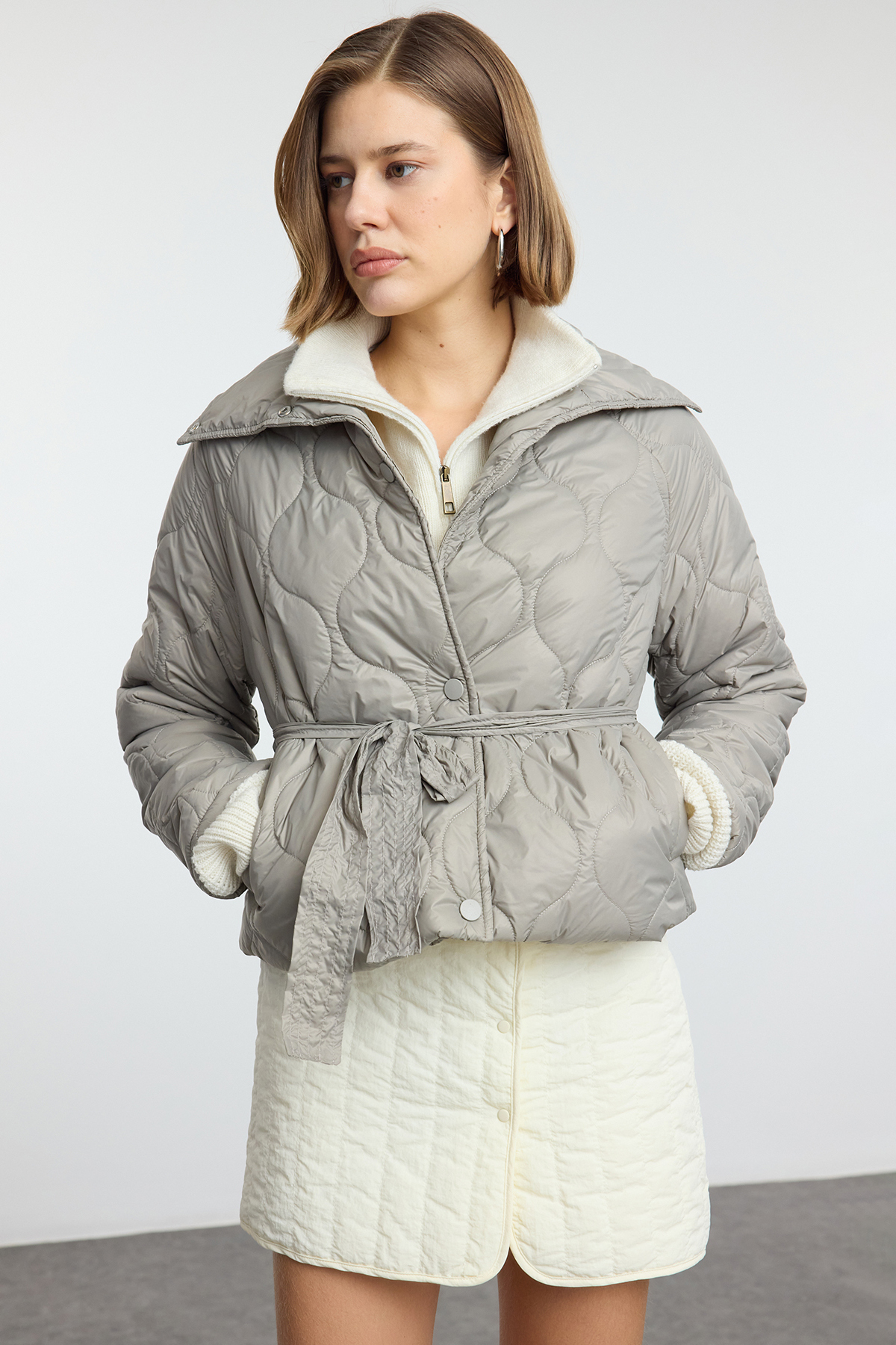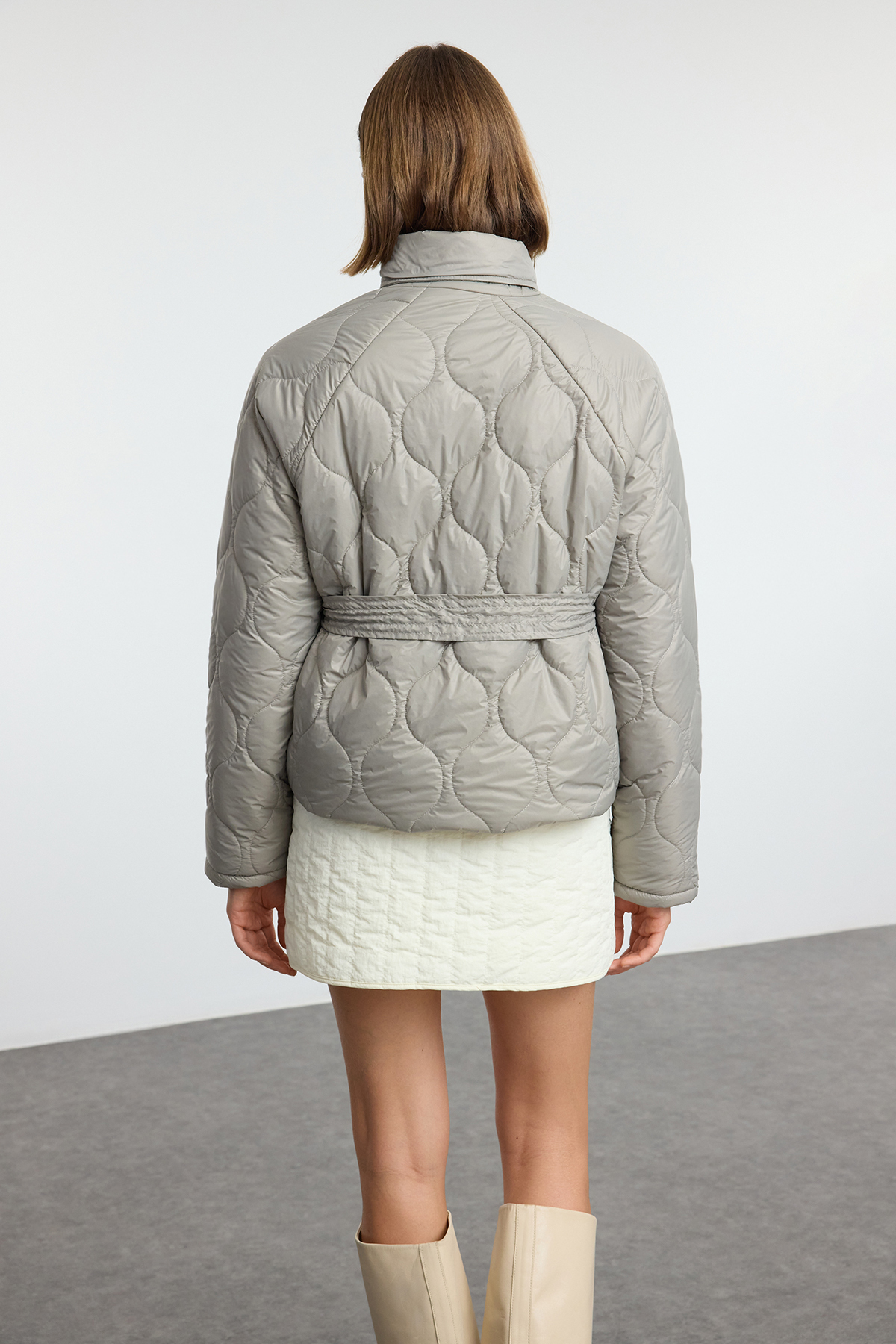 کاپشن زنانه بادی طرح لحافی ضد آب کمربند دار سنگی TRENDYOLMILLA