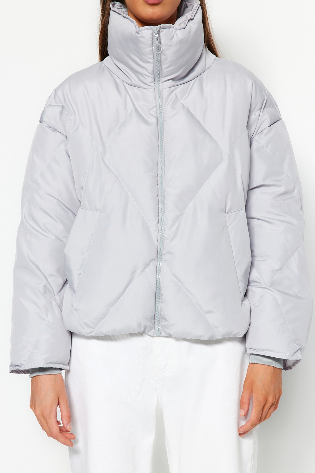 کاپشن زنانه لحافی بادی طوسی ضد آب trendyolmilla
