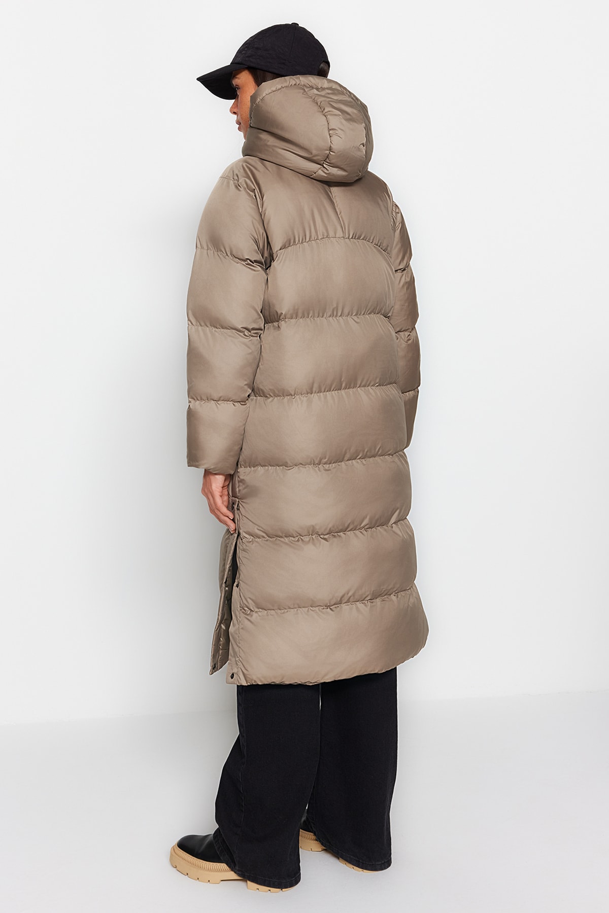 کاپشن زنانه پفی بلند ضد آب، کلاه دار پوست پیازی trendyolmilla