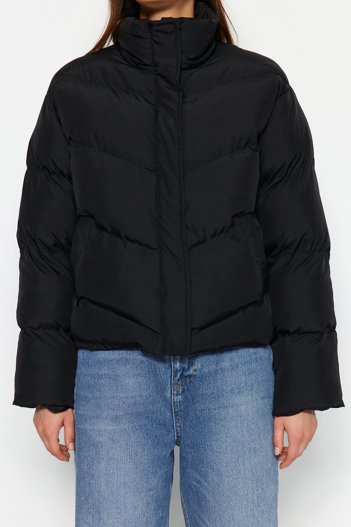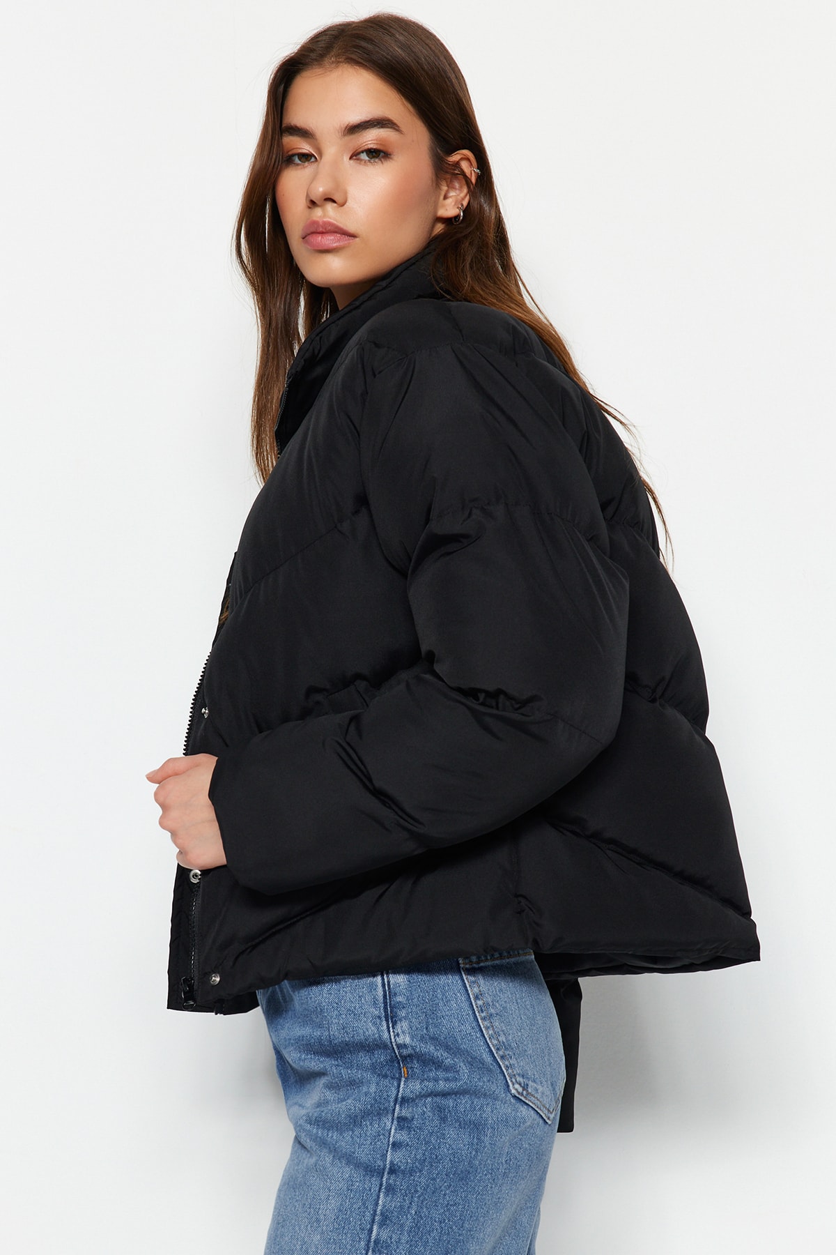 کاپشن زنانه پفی بلند مشکی ضد آب trendyolmilla