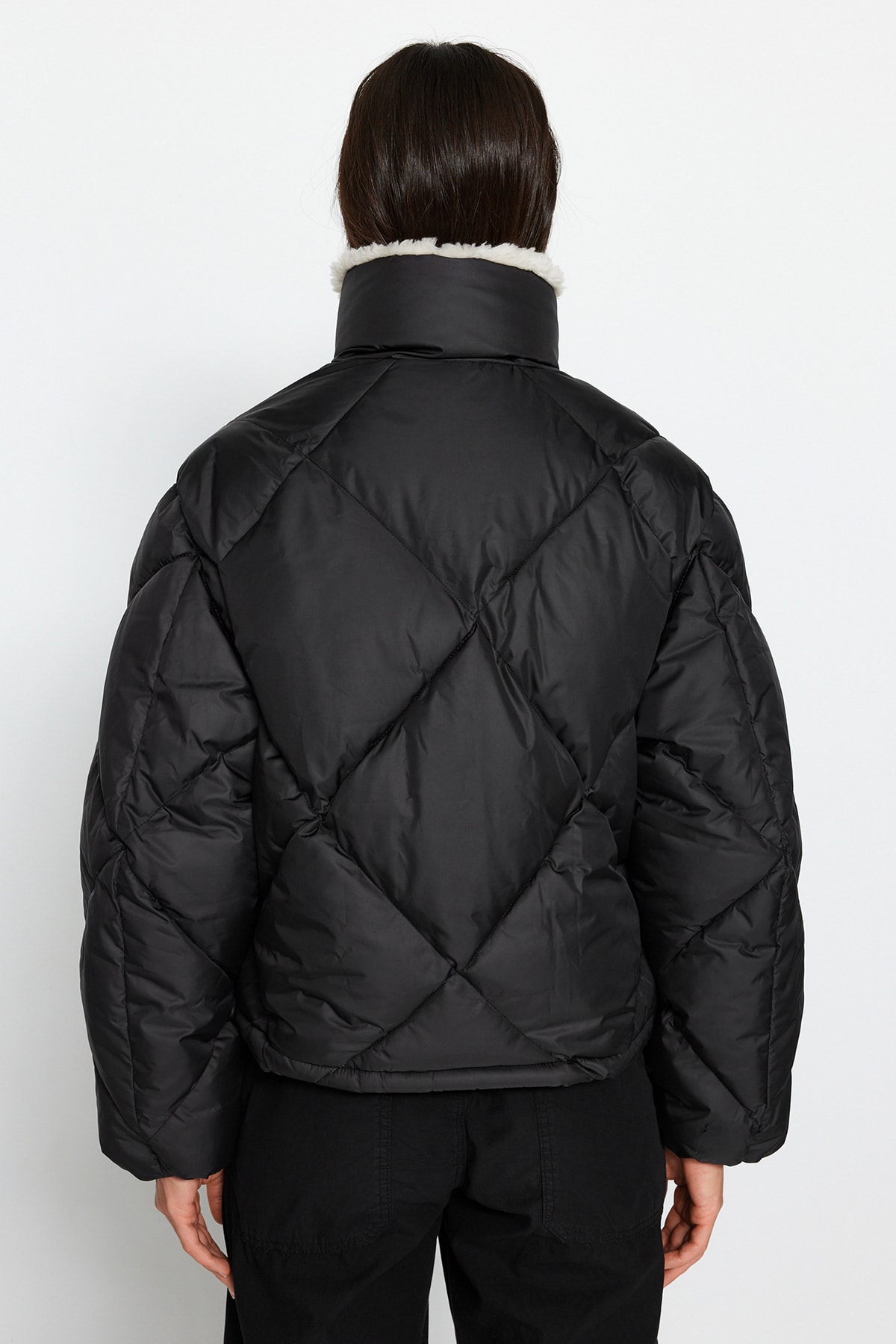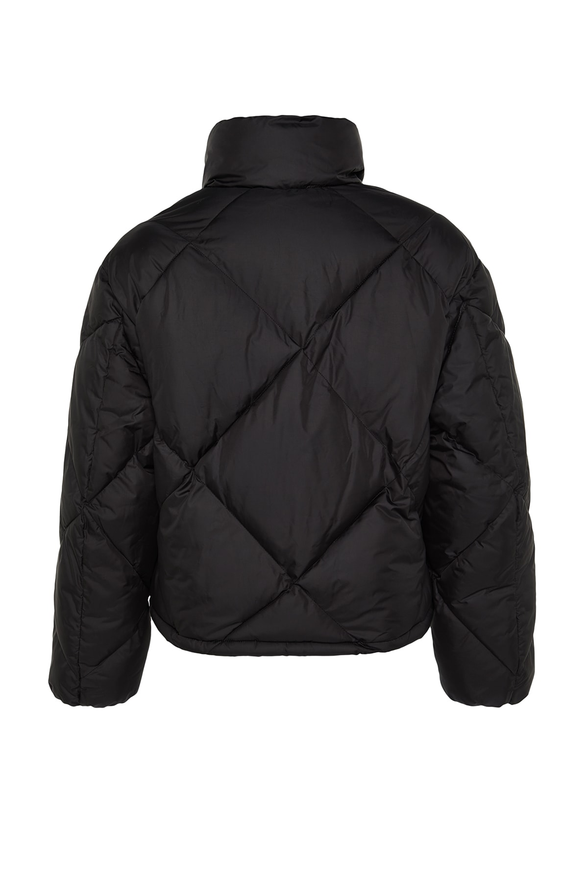 کاپشن زنانه پف دار یقه ای ضد آب Relax Fit Stand مشکی Defacto