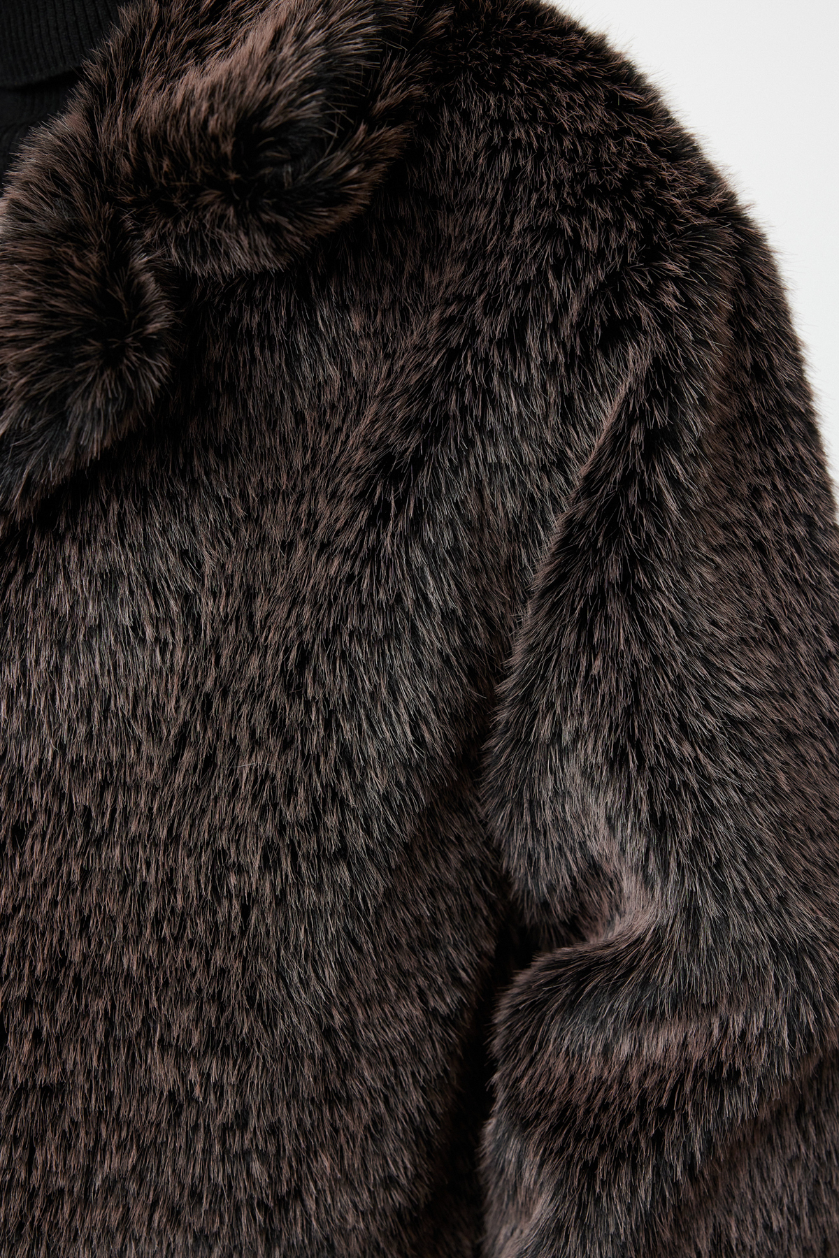 صفحه اصلی\همه کاپشن ها\کت زنانه خز قهوه ای تیره با اندازه معمولی trendyolmilla