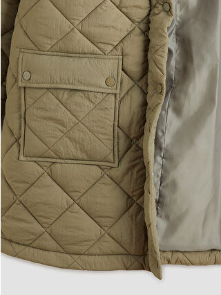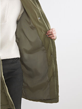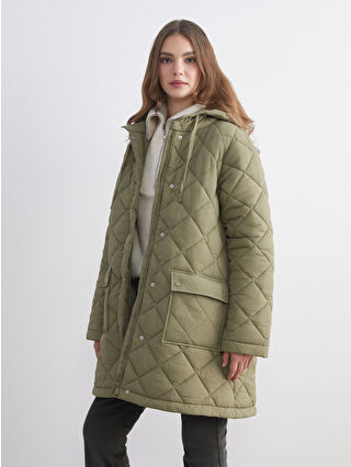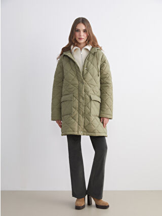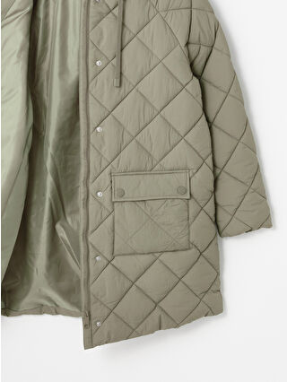 کاپشن بادی زنانه بزرگ و لحافی کلاه دار خاکی روشن LCW