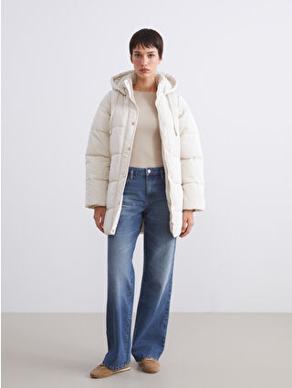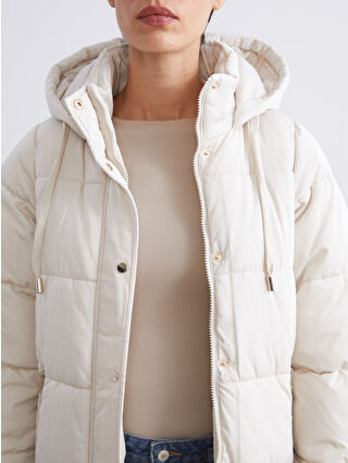 کاپشن بادی زنانه کلاه دار سفید LCW