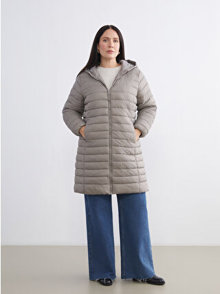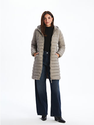 کاپشن بادی زنانه کلاه دار طوسی LCWAIKIKI