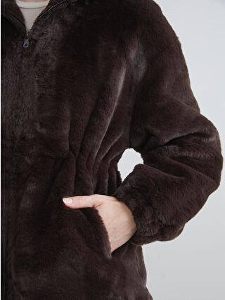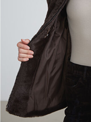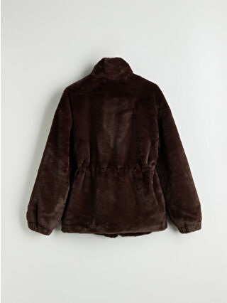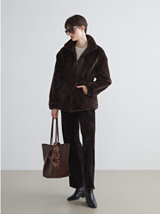 پالتوی مخمل زنانه یقه ایستاده قهوه ای LCW