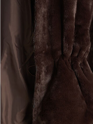 کت زنانه یقه خزدار طرح جیر قهوه ای lc waikiki