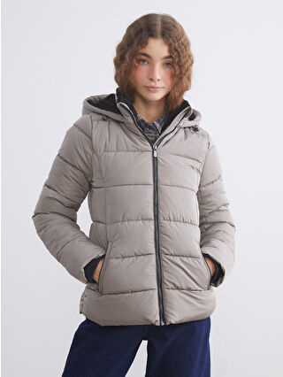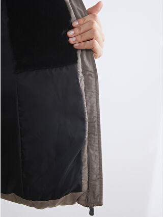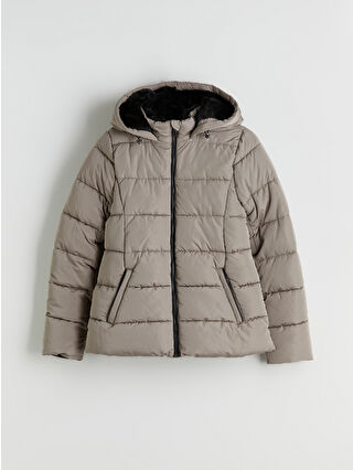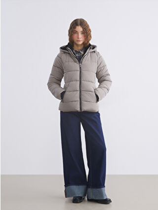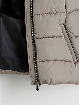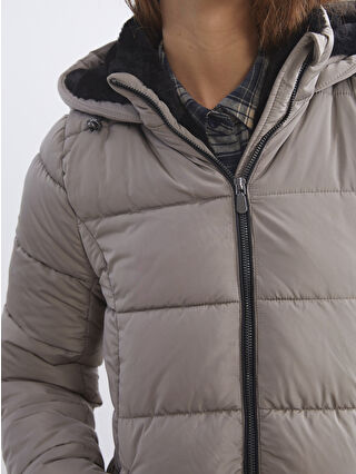 کاپشن زنانه پفی خاکستری کلاهدار ضد آب trendyolmilla