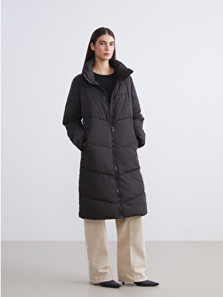 کاپشن بادی زنانه یقه ایستاده مشکی LCW
