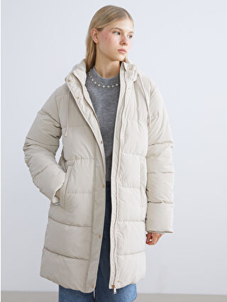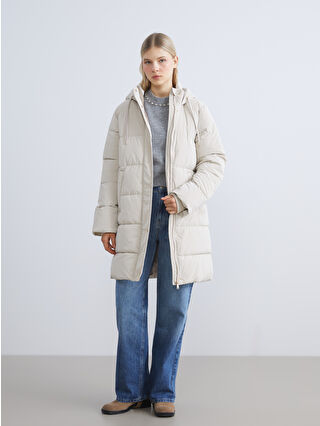 کاپشن زنانه بادی سایز مستقیم بژ تیره lcw