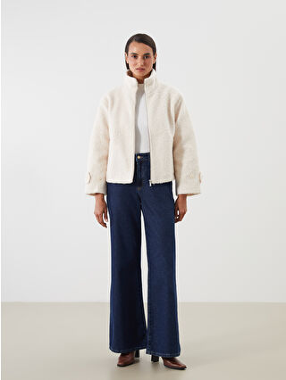 پالتوی مخمل زنانه یقه ایستاده اکرو LCWAIKIKI