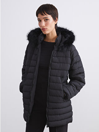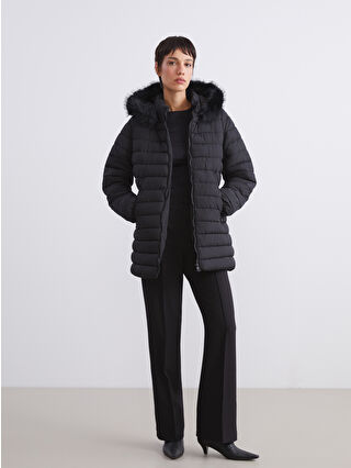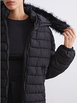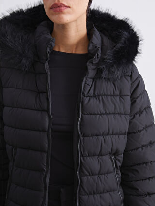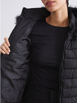 کاپشن بادی زنانه کلاه دار مشکی LCW