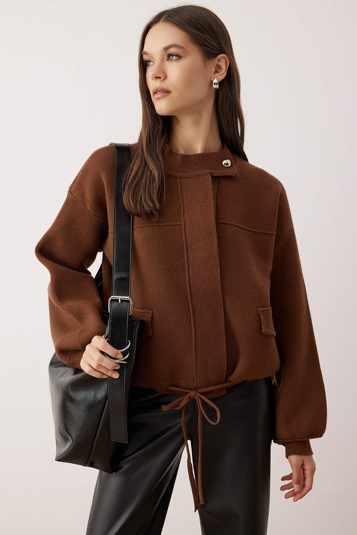 صفحه اصلی\همه ژاکت ها\ژاکت زنانه بافتنی زیپدار قهوهای trendyolmilla