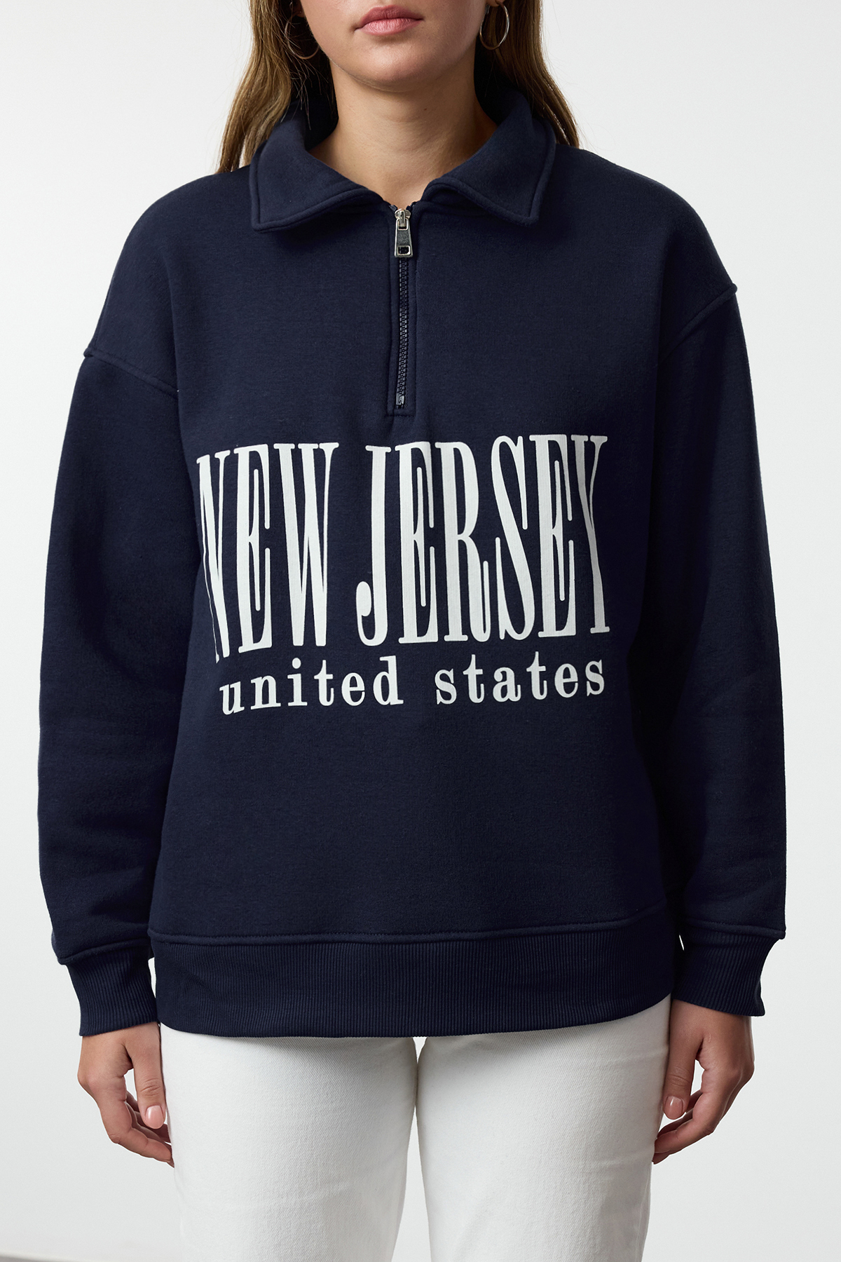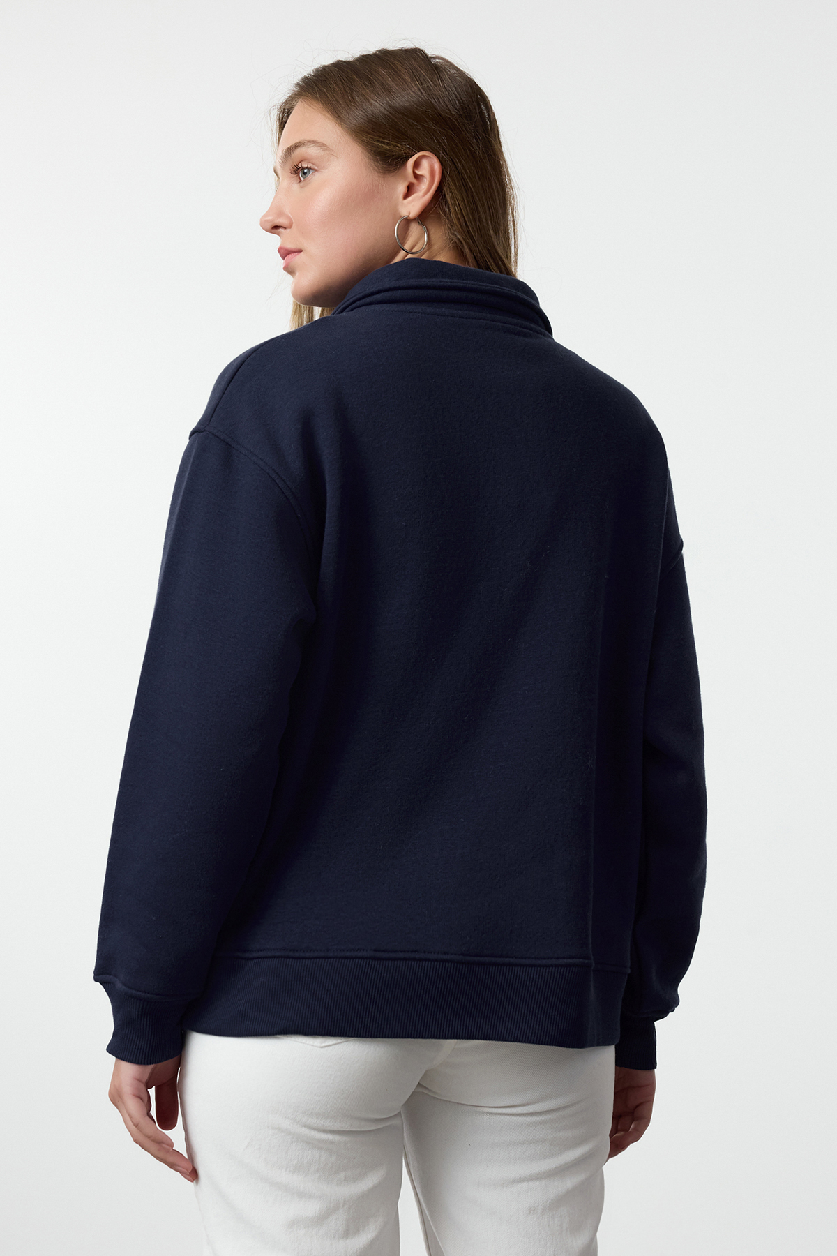صفحه اصلی\همه سویشرت ها\سویشرت زنانه زیپدار ضخیم TRENDYOLMILLA سورمه ای
