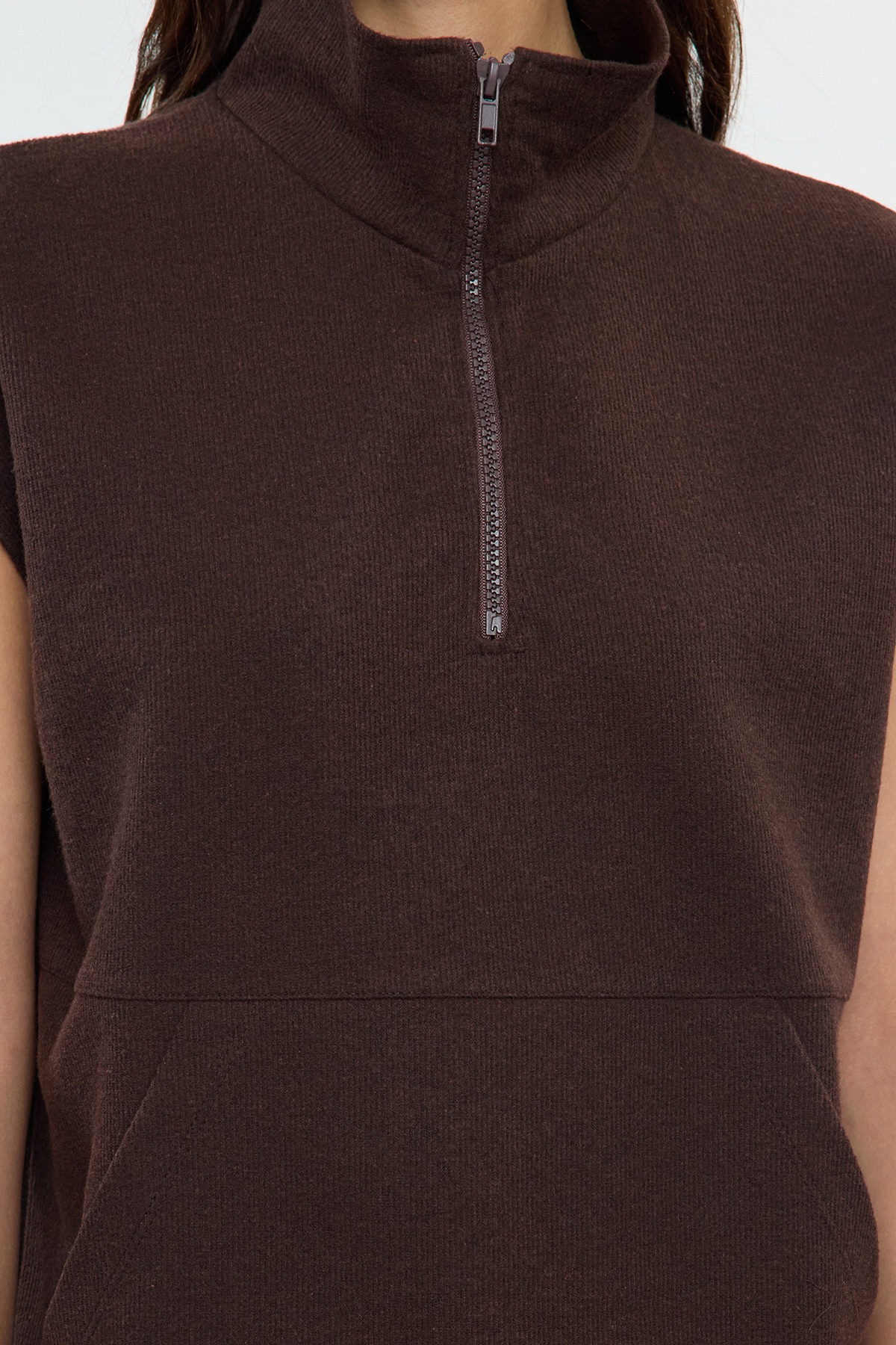 صفحه اصلی\همه سویشرت ها\سویشرت زنانه بافتنی سلانیک قهوهای بدون آستین TRENDYOLMILLA