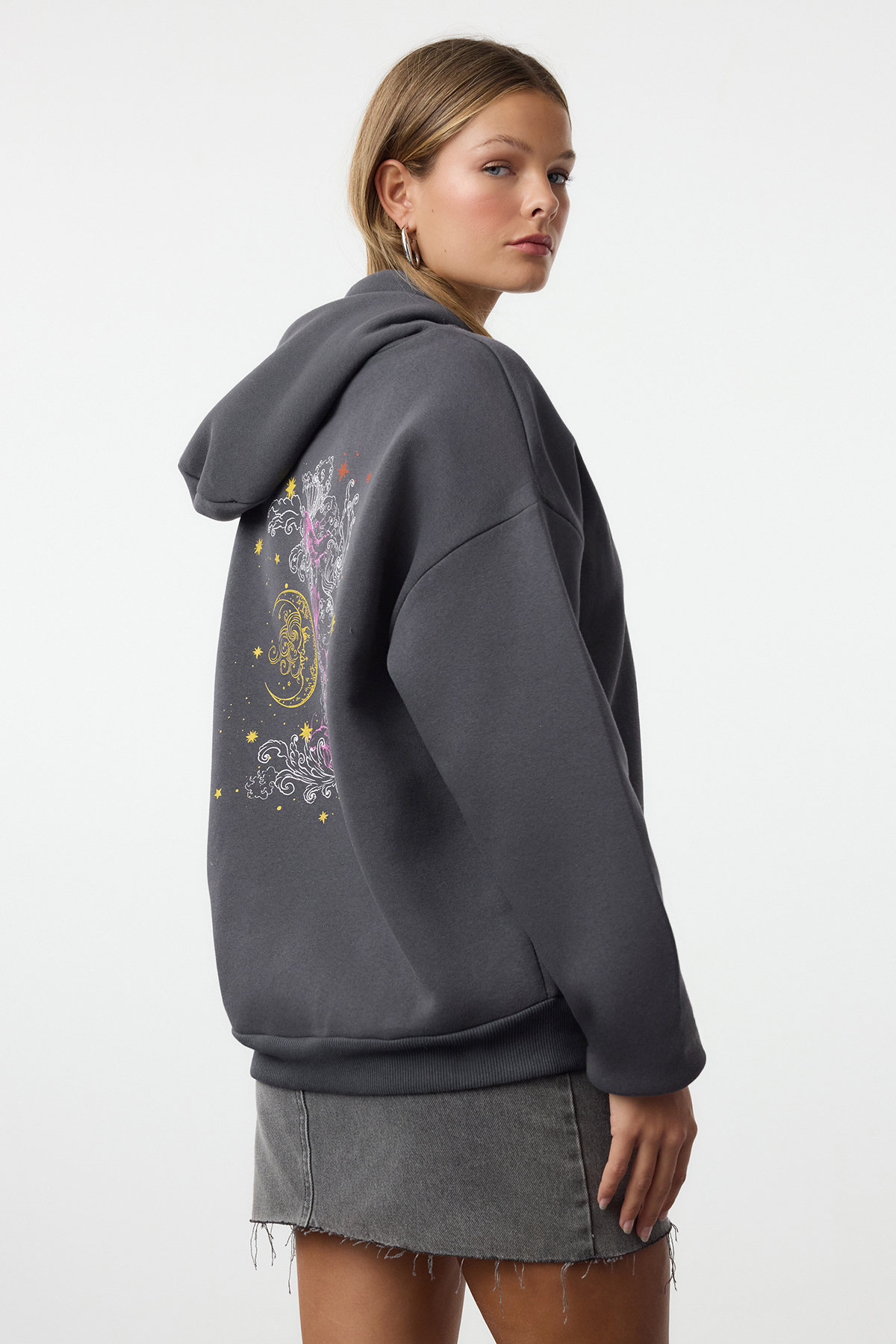 هودی زنانه چاپدار باور سایز ذغالی trendyolmilla
