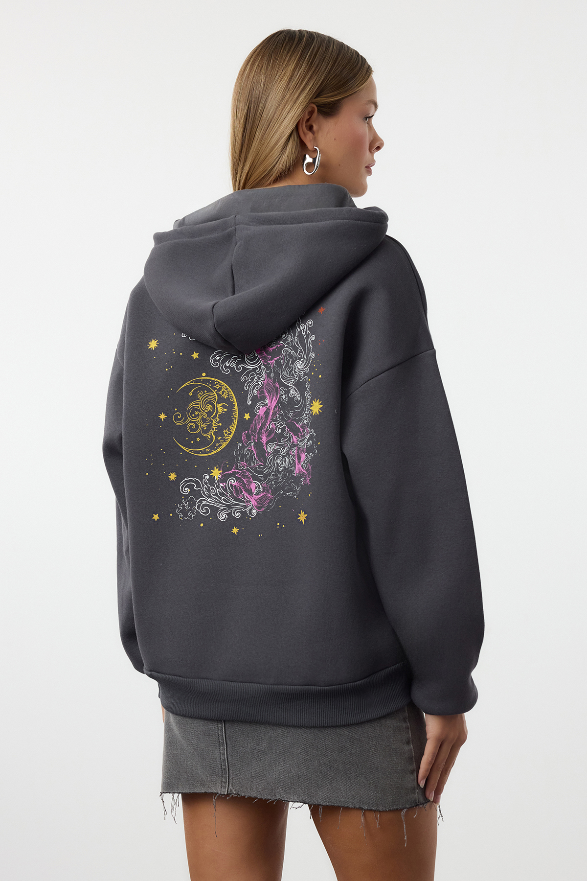 صفحه اصلی\همه سویشرت ها\هودی زنانه چاپدار باور سایز ذغالی trendyolmilla