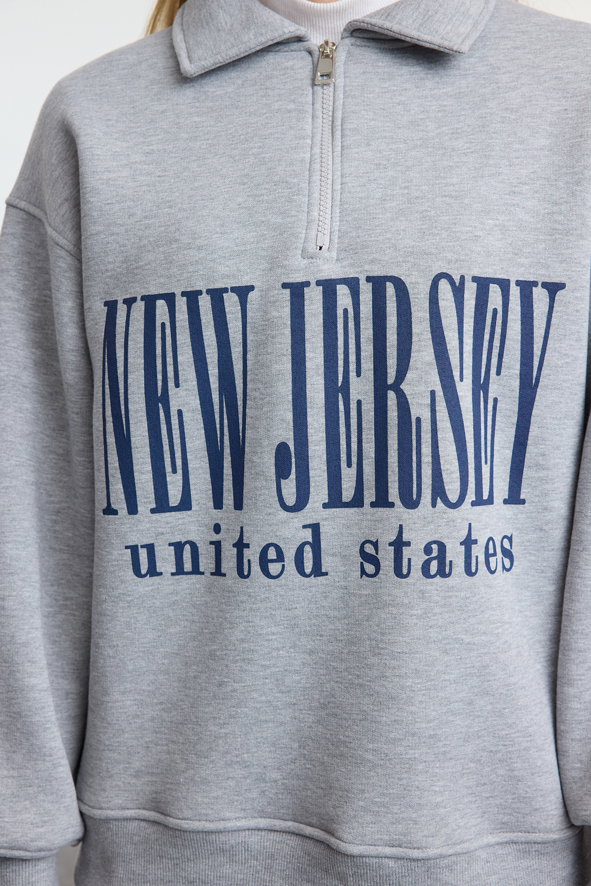 صفحه اصلی\همه سویشرت ها\سویشرت زنانه زیپدار طرحدار خاکستری ملانژ trendyolmilla