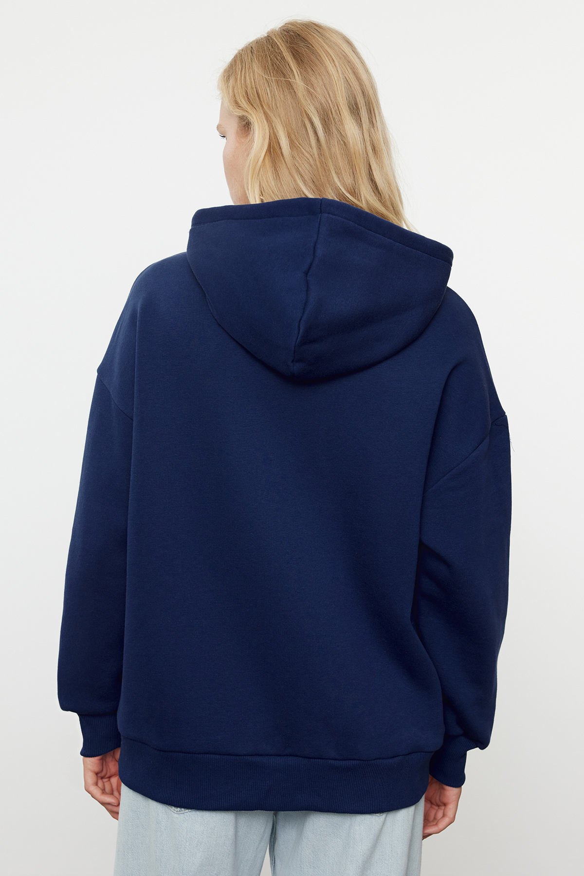 سویشرت زنانه پشمی ضخیم زیپدار/اور سایز سرمه ای trendyolmilla