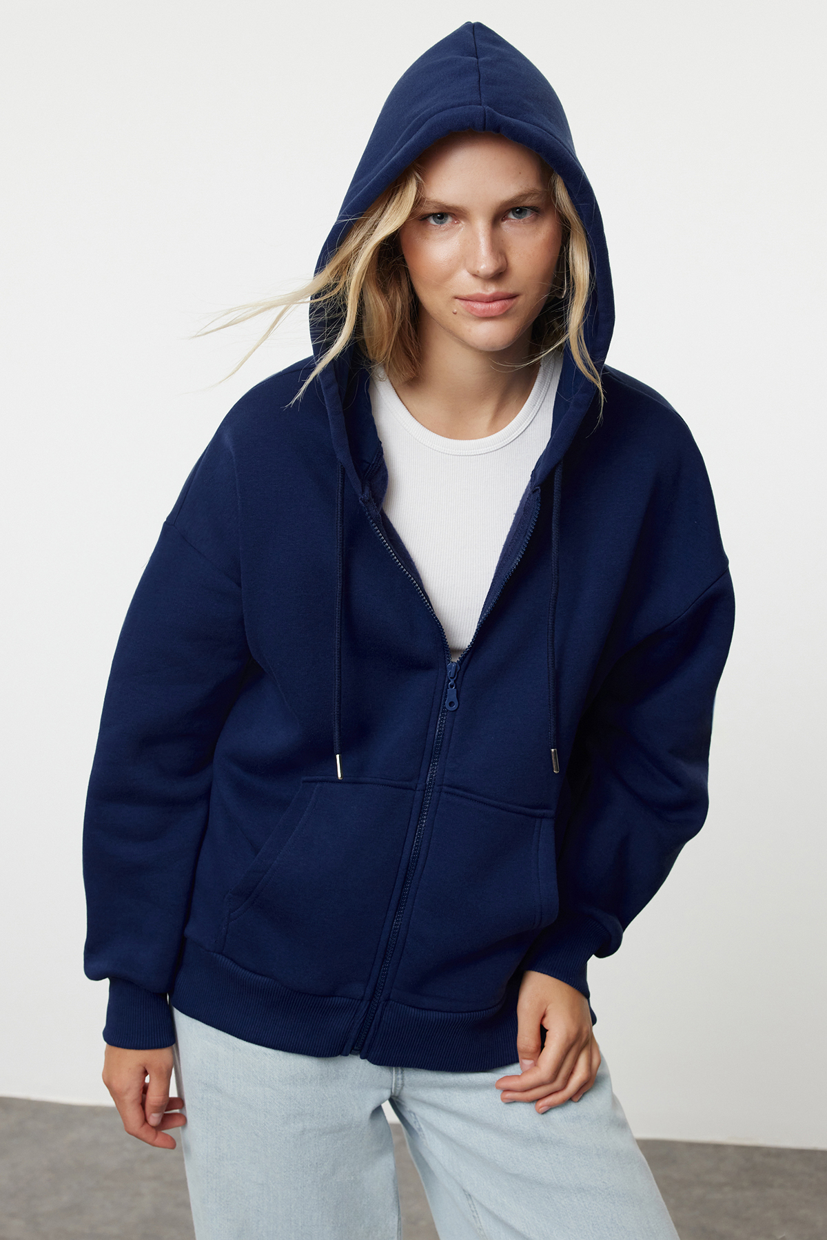 صفحه اصلی\همه سویشرت ها\سویشرت زنانه پشمی ضخیم زیپدار/اور سایز سرمه ای trendyolmilla
