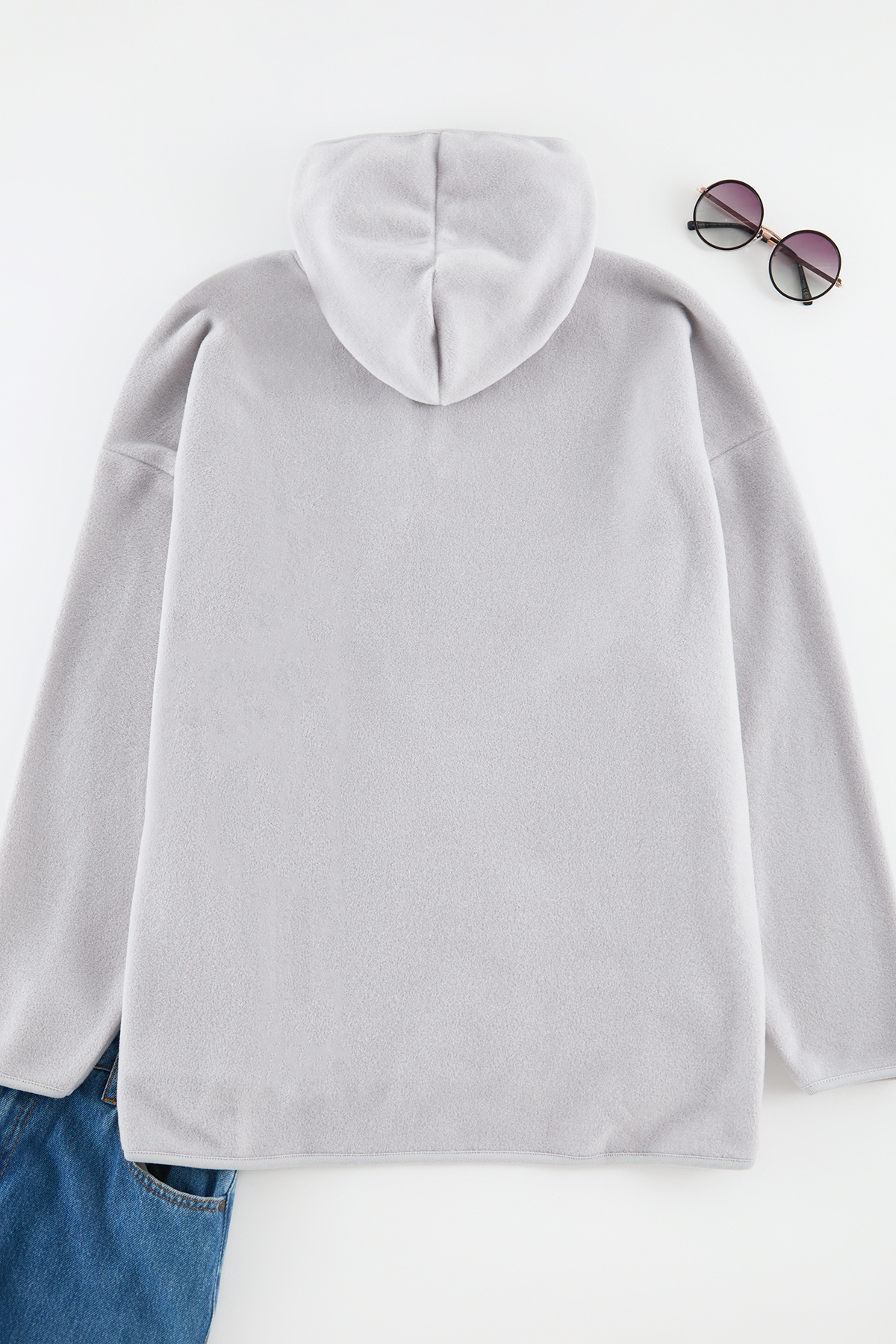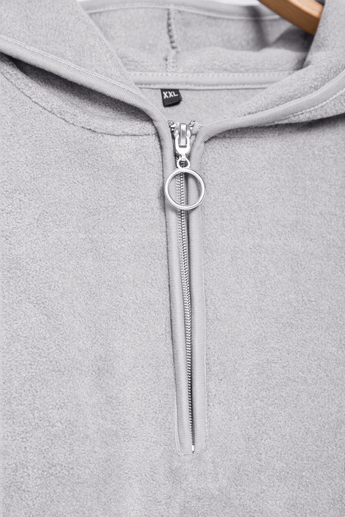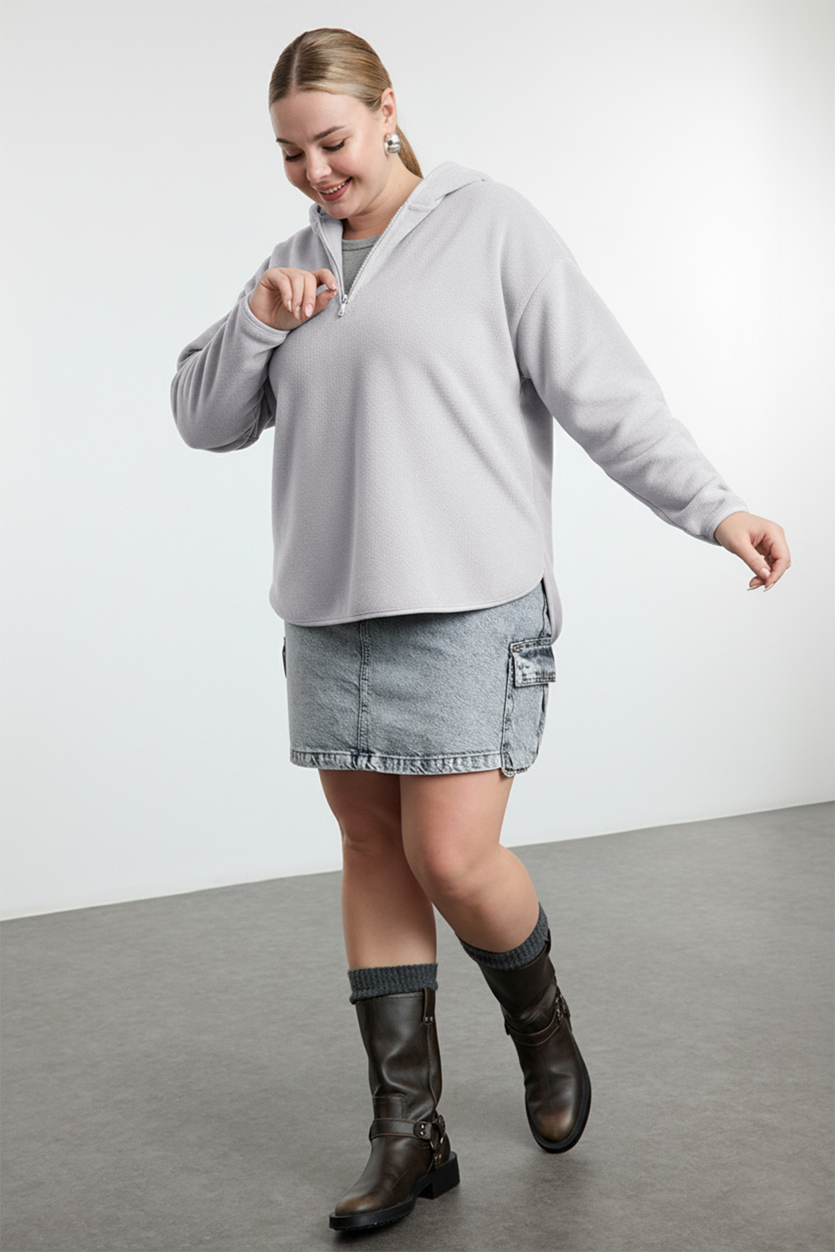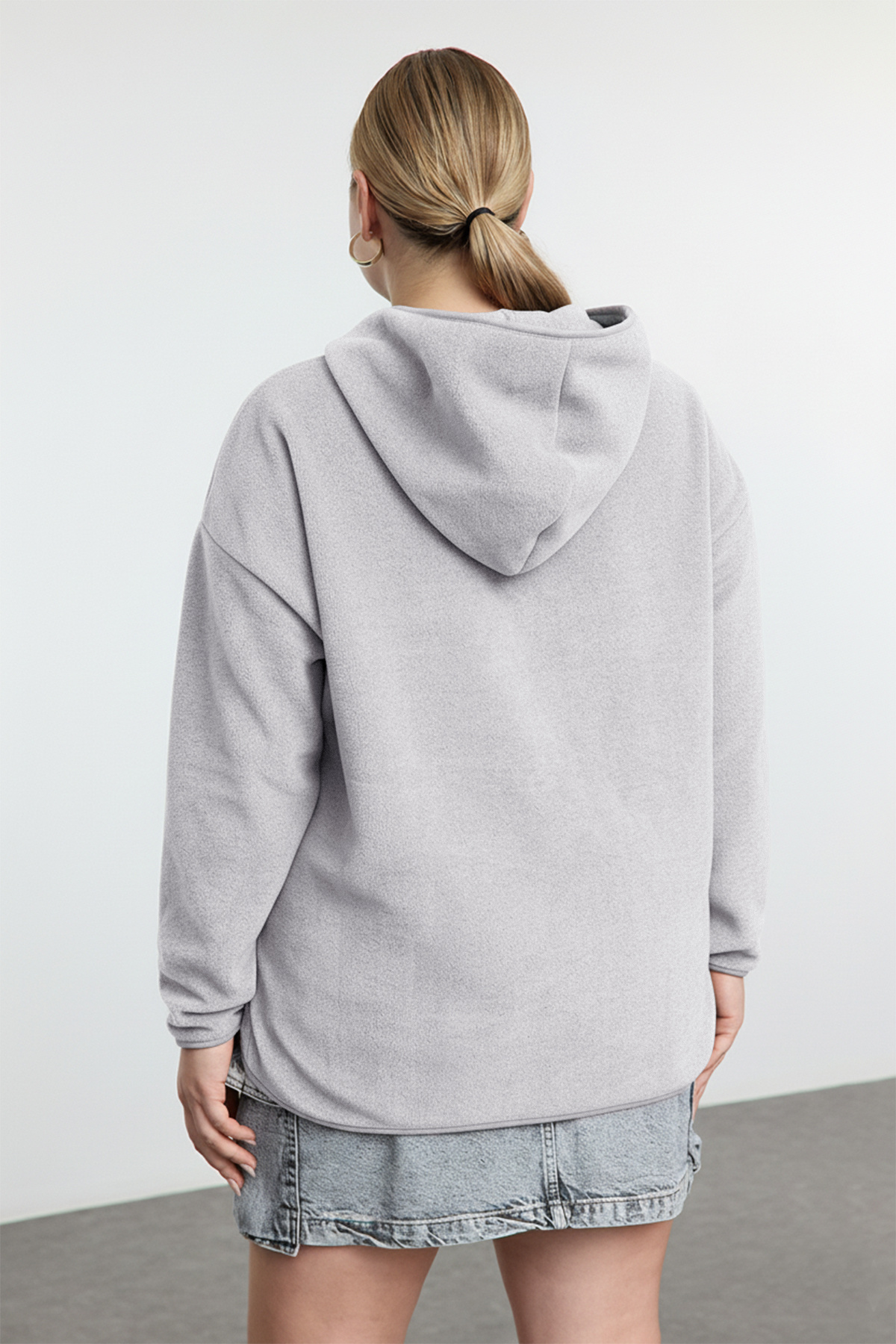 سویشرت زنانه سایز بزرگ کلاهدار و زیپدار از جنس پشم ضخیم خاکستری trendyolmilla