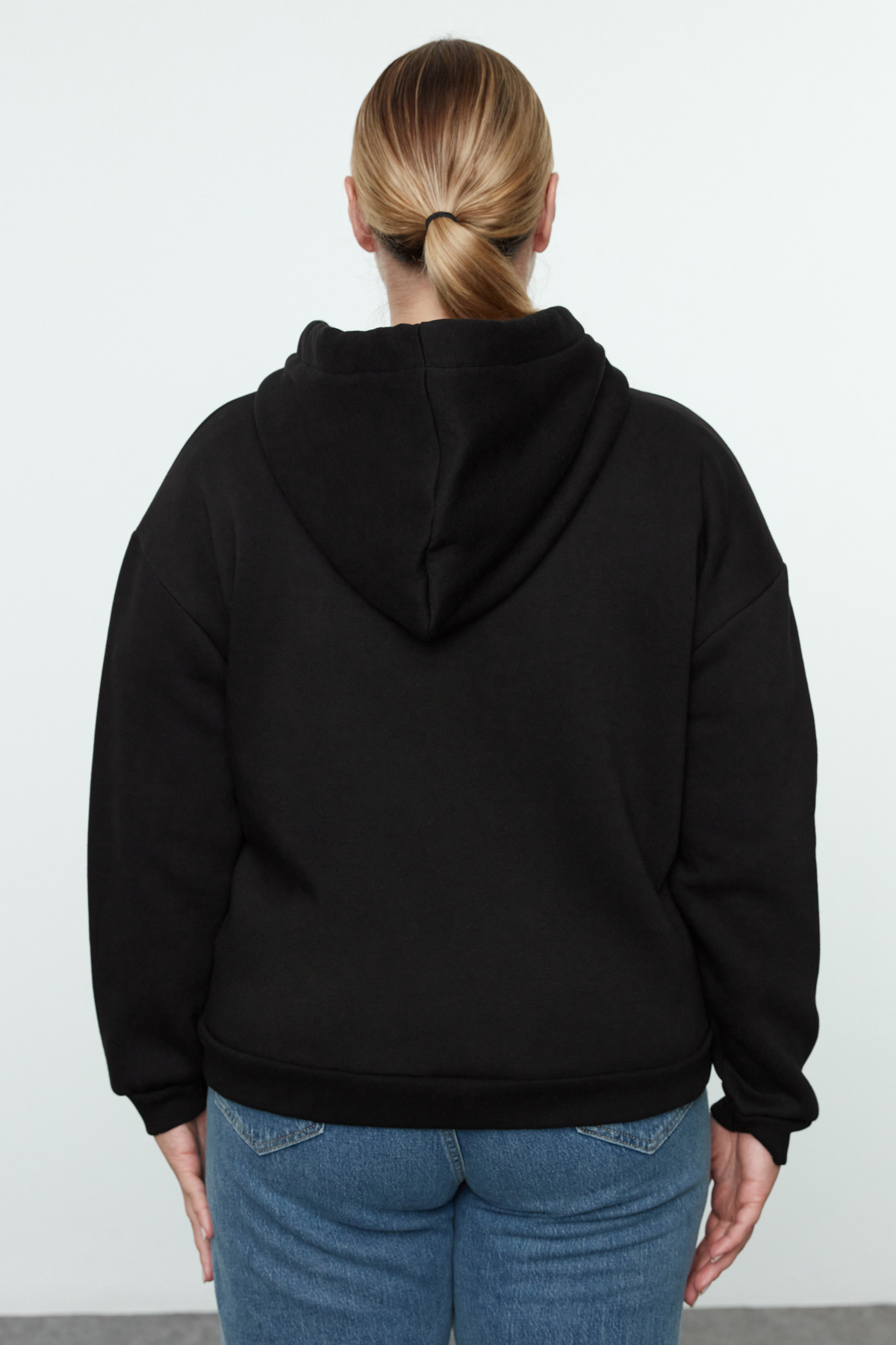 سویشرت زنانه زیپدار مشکی کلاهدار، آستر پشمی trendyolmilla